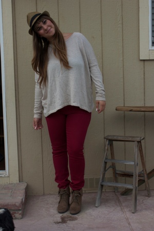 I LOVE those pants, the color is gorgeous but with the light oatmeal top, hat, and wedges, it’s an A+!