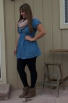 Hey everybody! Hope you had a great week. Mine has been completely busy and crazy and hectic. It has come and gone in the most absurd blur and I am honestly so glad that it’s over. My babies at work all got sick which was no fun and that threw my partner Brittney and I off. Hopefully your week and upcoming weekend turn out better than mine did! Anyways, here’s the first (but kind of second) post for the Fall Fridays series in August. I picked up this adorable denim dress at Forever 21 for fifteen bucks a few weeks ago. I am in love with denim right now as is the rest of my worldly fashion friends! I wore it last week to the Reno Midtown Artwalk for my best friend Micah’s birthday adventure. It was a poor outfit choice because it’s a little short and it was really windy that night. No fun to be holding down a dress all night long even if it was a cute outfit! Sidetracked. Well for future fall outfit’s I thought it’d be great paired with some leggings that would keep you warm and covered by any kind of wind! Along with it I added a pale neutral pink circle scarf that I got from H&M. I love it in the winter time with any type of outfit. And of course, the same wedge boots were used to top this outfit off! I am seriously sick of this 100 degree Reno weather we have been having lately and cannot wait for the rain and coolness that falls brings. This will definitely be one of first go to outfits! I love pieces that you can wear in more than one season and this dress does just the trick!