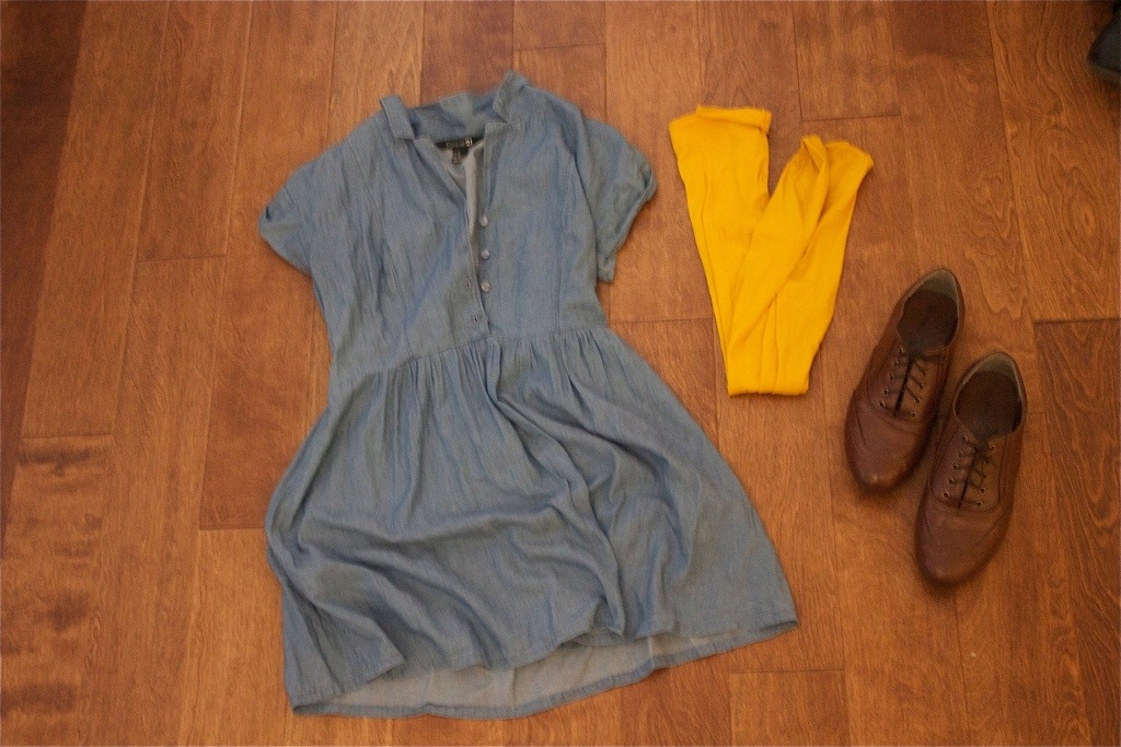 Denim Fitted Dress; Forever 21 $14 Yellow Tights; Target $5