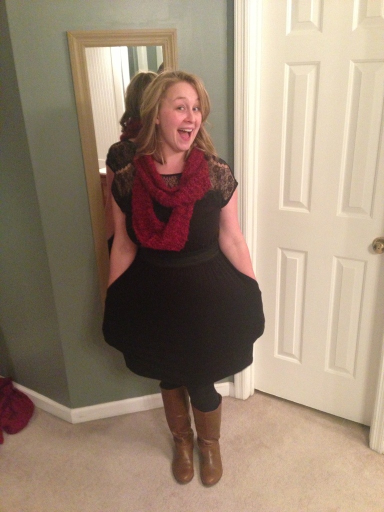 1. Taking a simple black dress and adding color by pairing it with either a sweater or scarf makes it look completely different! And the combinations are endless.