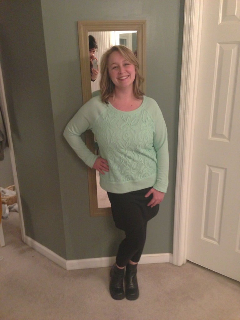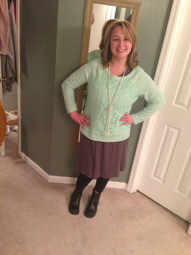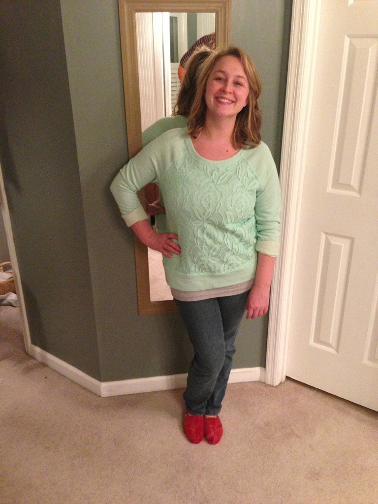 5. Feel like lounging? Wear a cute crew neck! This mint one we found at Target for 10 bucks! But it looks cute over a dress, on too of leggings or just with jeans. Super comfy and cute!