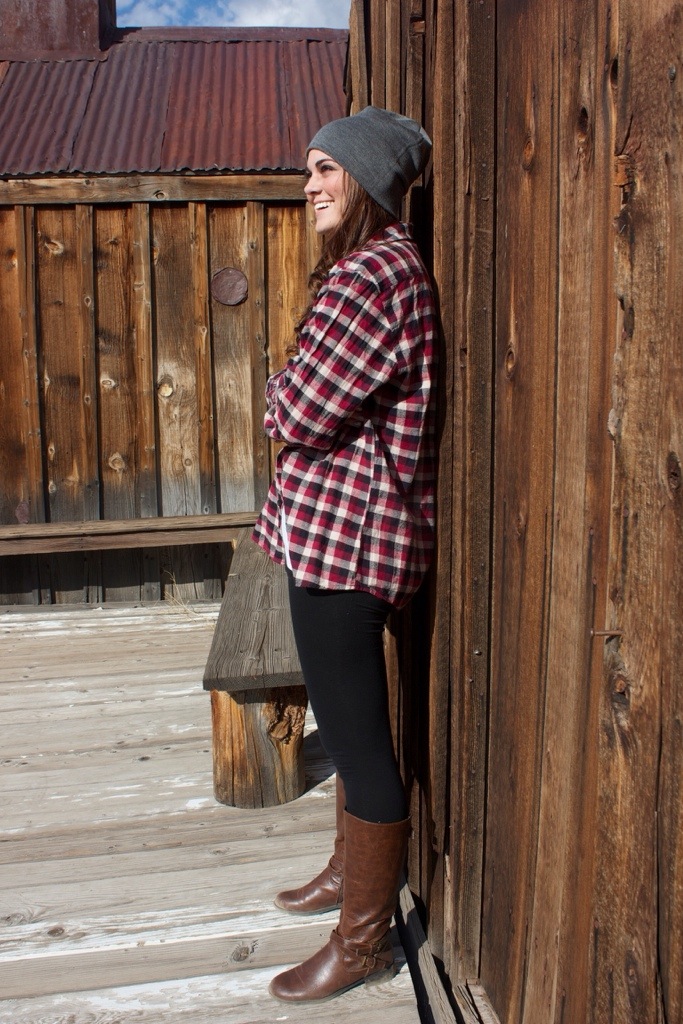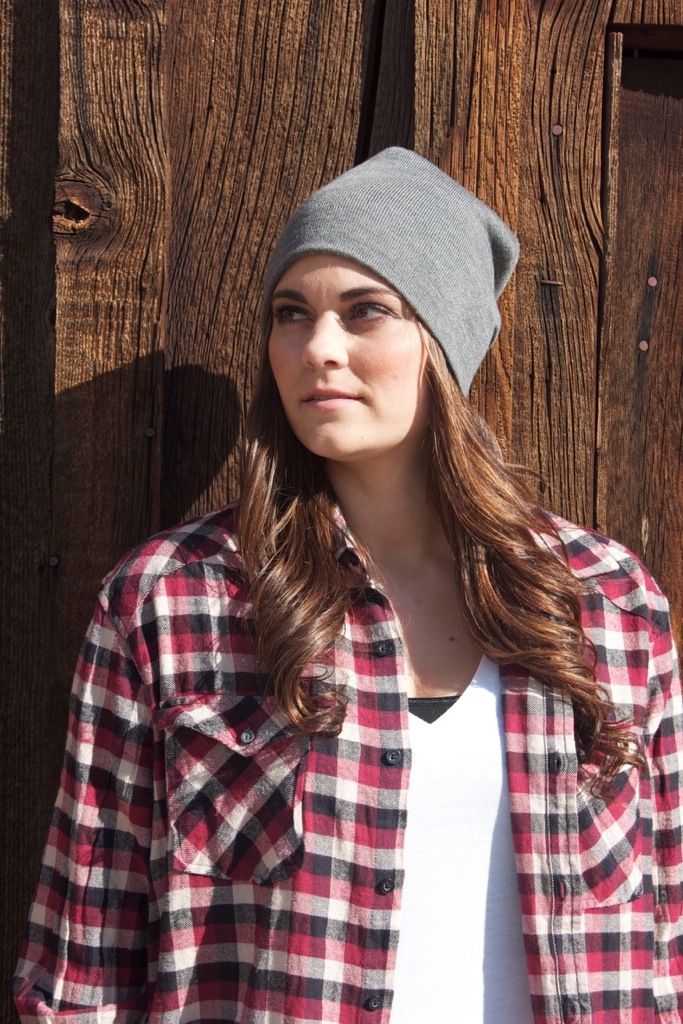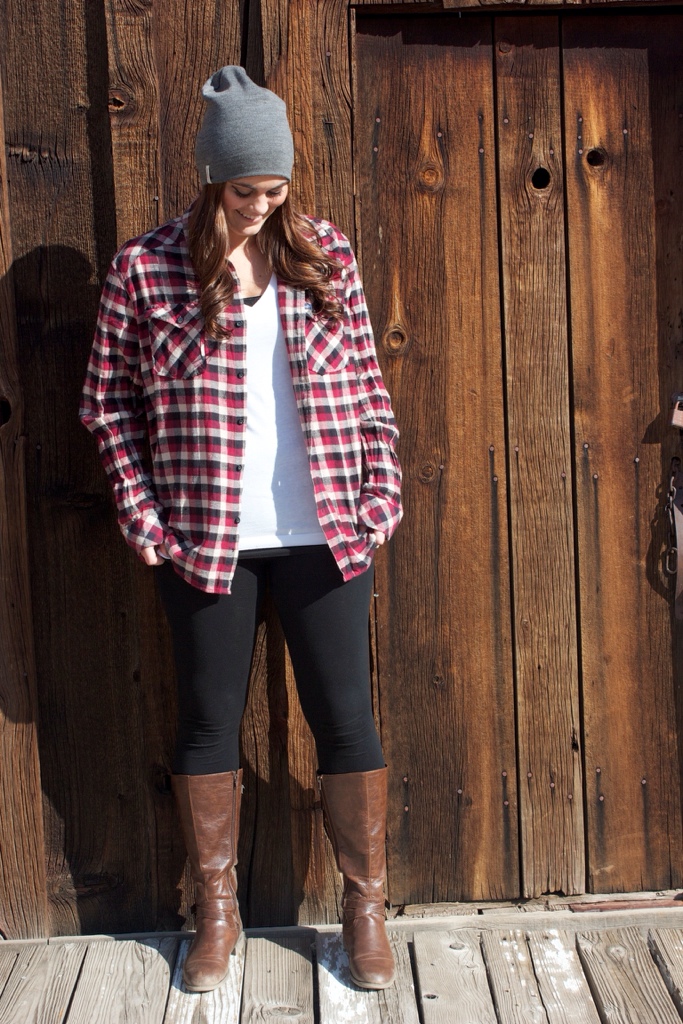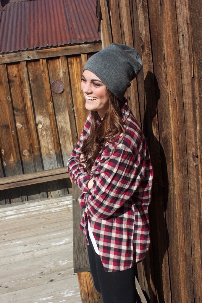 This final look happened totally on accident. I brought this black and red flannel with me to the shoot as an over shirt incase it got cold. But I made Shelby wear it over her white tee for a relaxed but put together look. I love how comfy a flannel can be, but when worn with cute flats or boots it looks like a complete outfit. They’re my fave go to shirt for a chilly day. My brother loved how she looked in this outfit, which is funny because it’s exactly something that I would wear! The beanie makes the outfit though of course. Every girl out there, I’m tellin ya now, own a beanie please. I can’t ever get enough of mine!