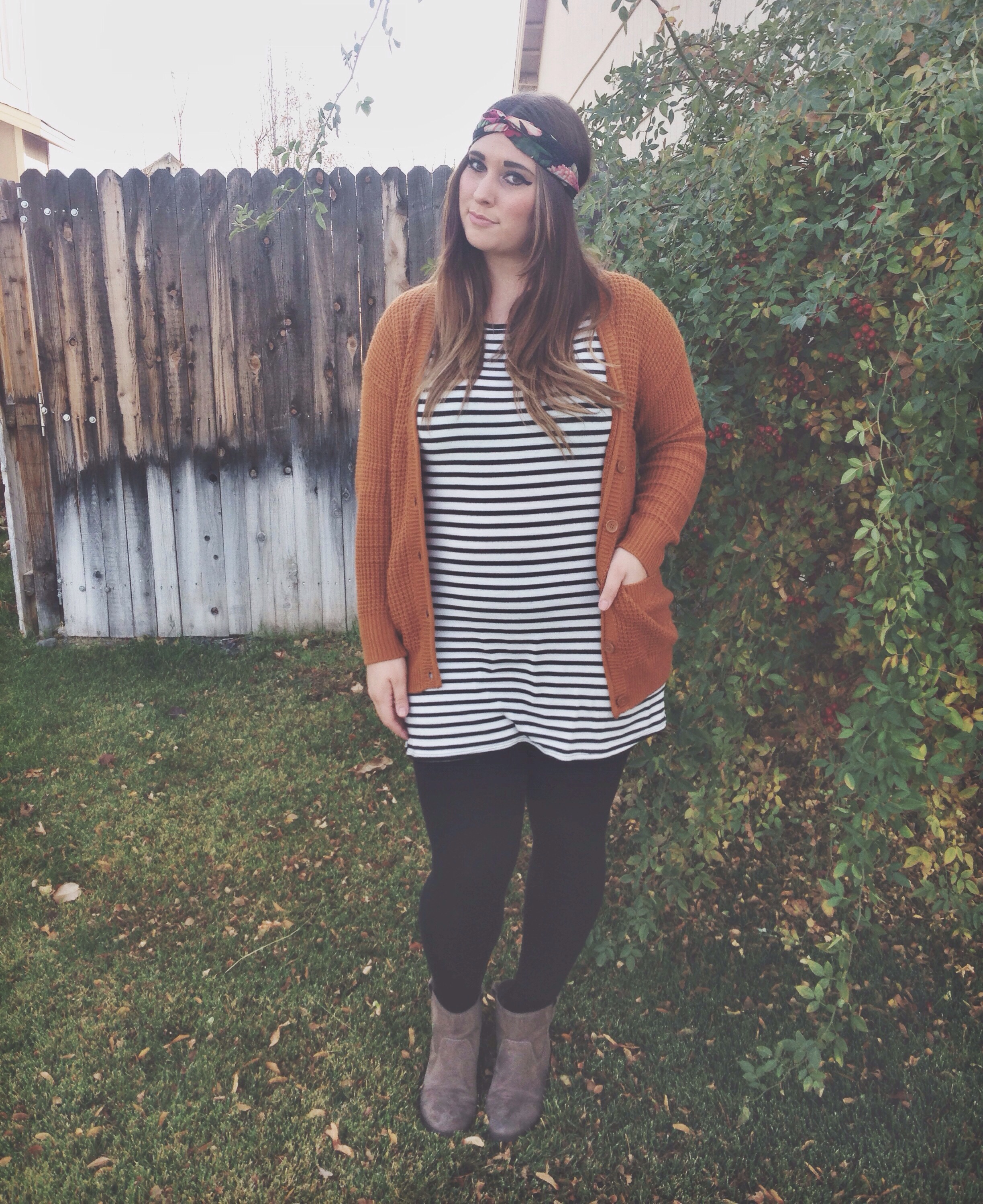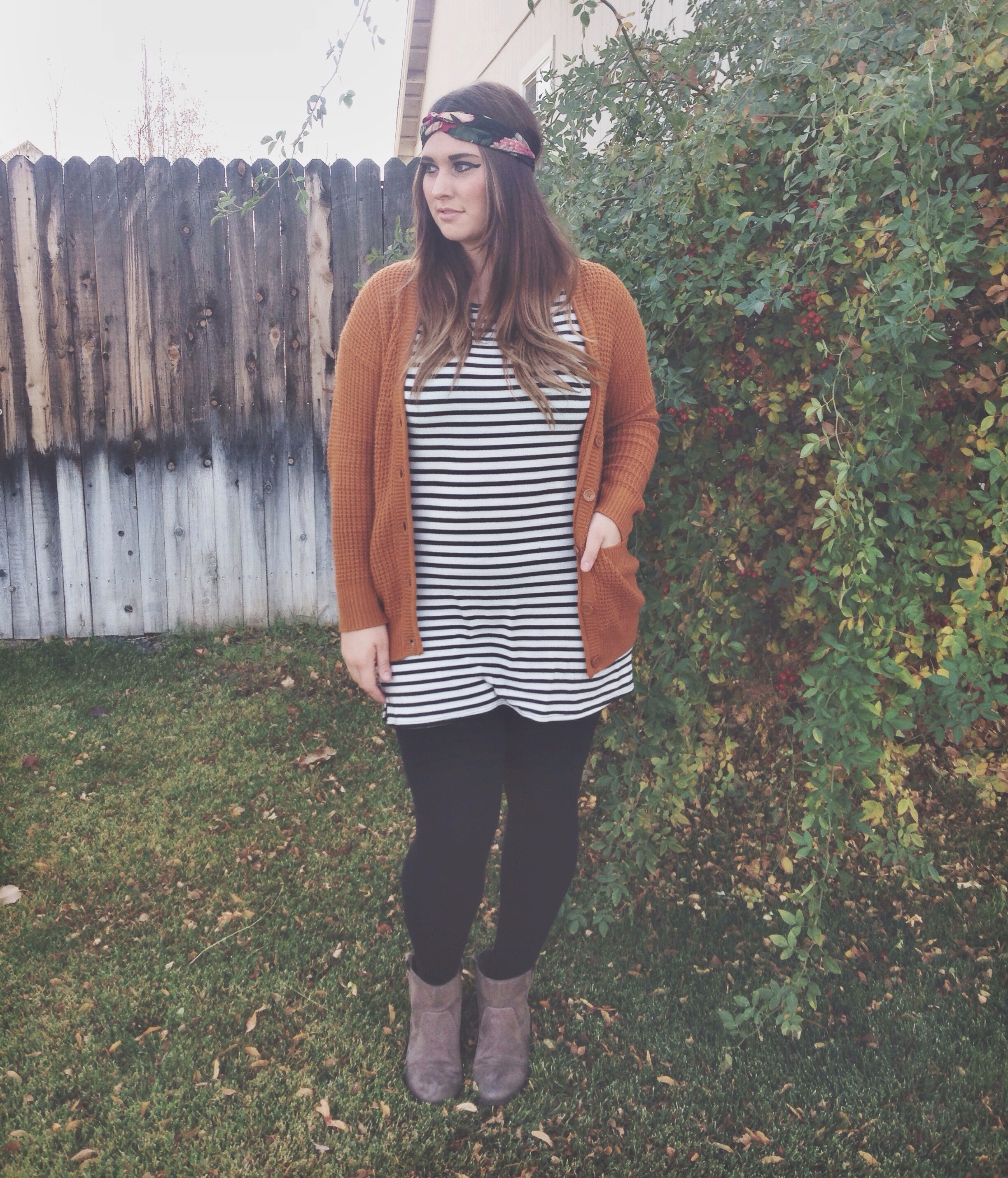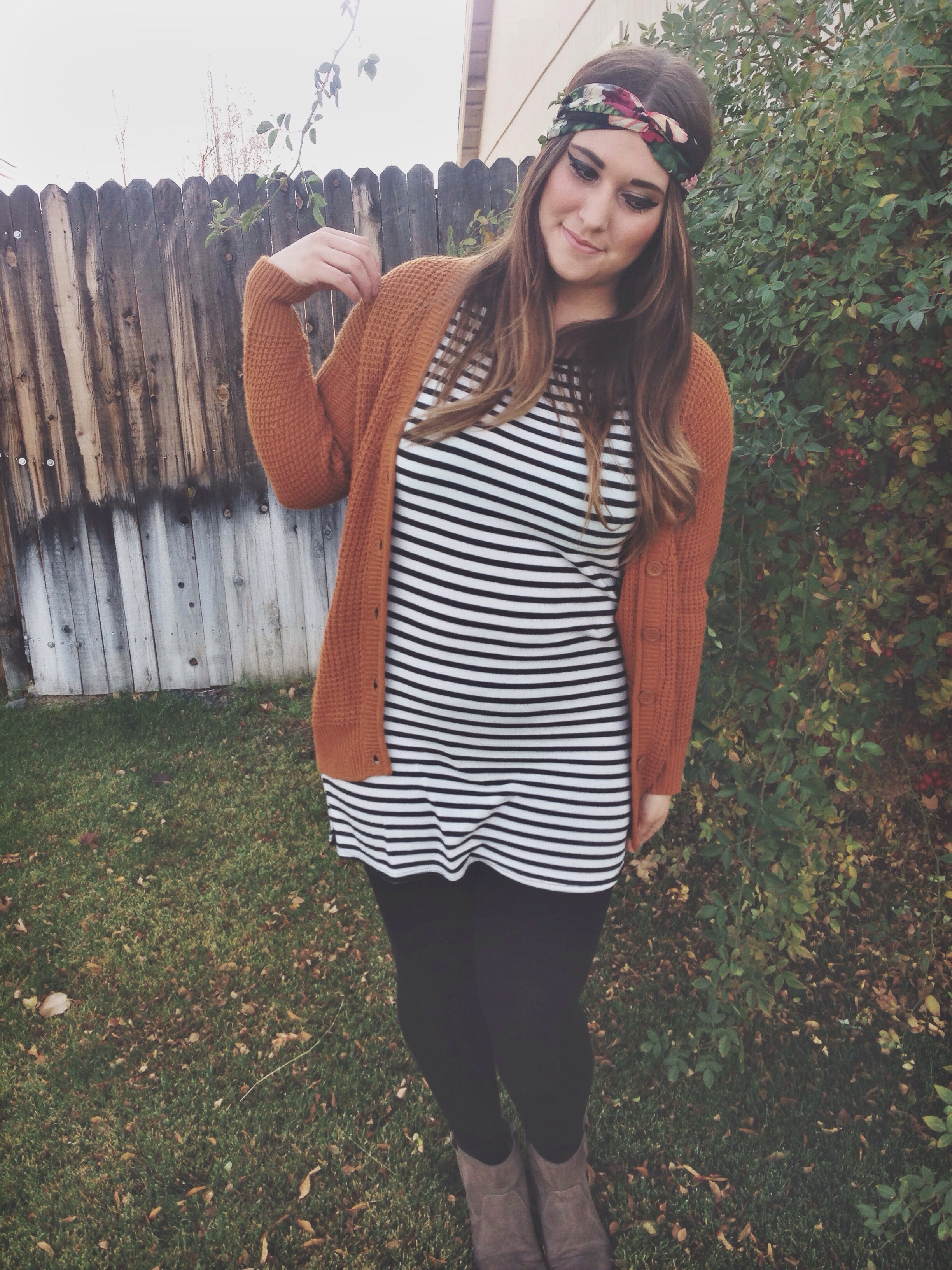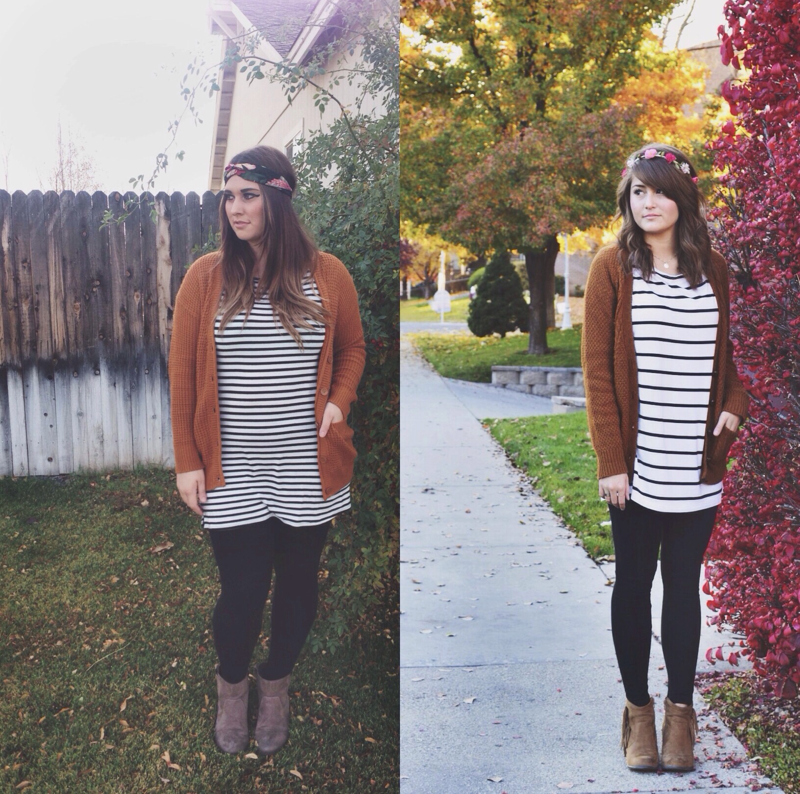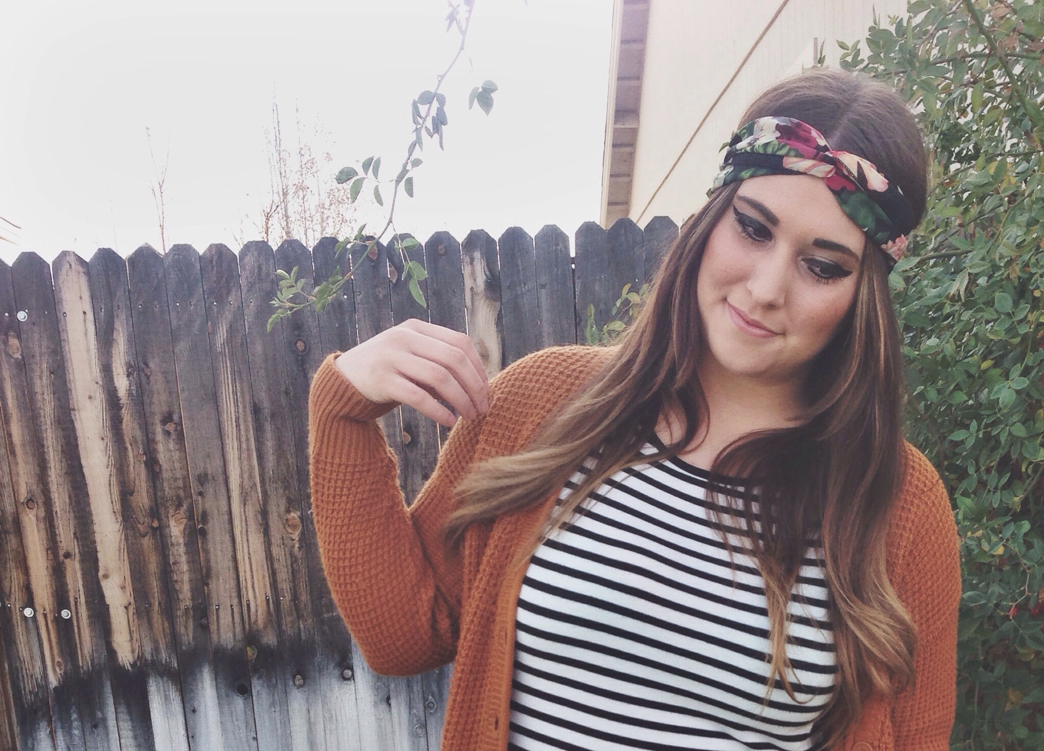 And ta-da! Here’s the results! I even posed the same, lol! I saw the outfit on the right & simply fell in love! The stripes, the floral crown, the sweater, it was all too perfect! Now why didn’t I think of this!? Sure, I’ve worn pretty similar things to this, but that rosey colored crown paired with the mustard colored sweater & the accent of black & white stripes WITH the tan Chelsea booties was just literal perfection in my eyes. Too perfectly put together in my book. Maybe the autumn background is what really sold me… I’m a sucker for changing leaves. But when I saw this outfit I couldn’t help but not want to re-create it. And yes, lucky me had very similar pieces in my closet already. Even down to the headband, sort of! I’m still looking for (or wanting to make) an actually floral crown but my floral headband did the trick nonetheless. Such simplicity, but, dare I say it again, such perfection! I’m literally dying over this outfit that I wore yesterday & I’m currently wearing my pajamas right now! That’s saying something about some major outfit inspiration ladies!