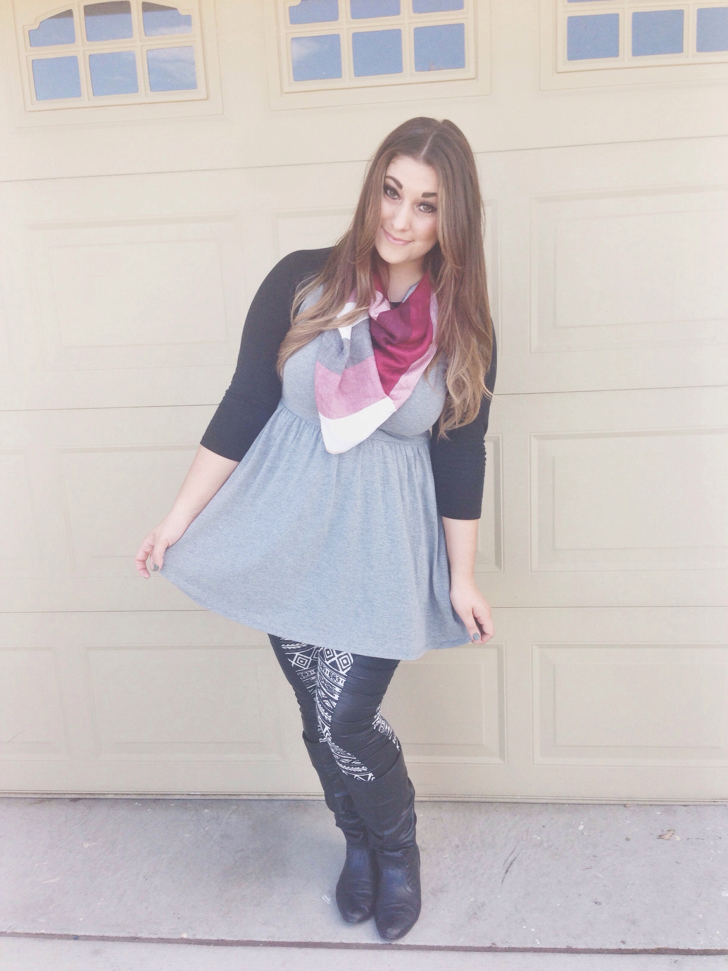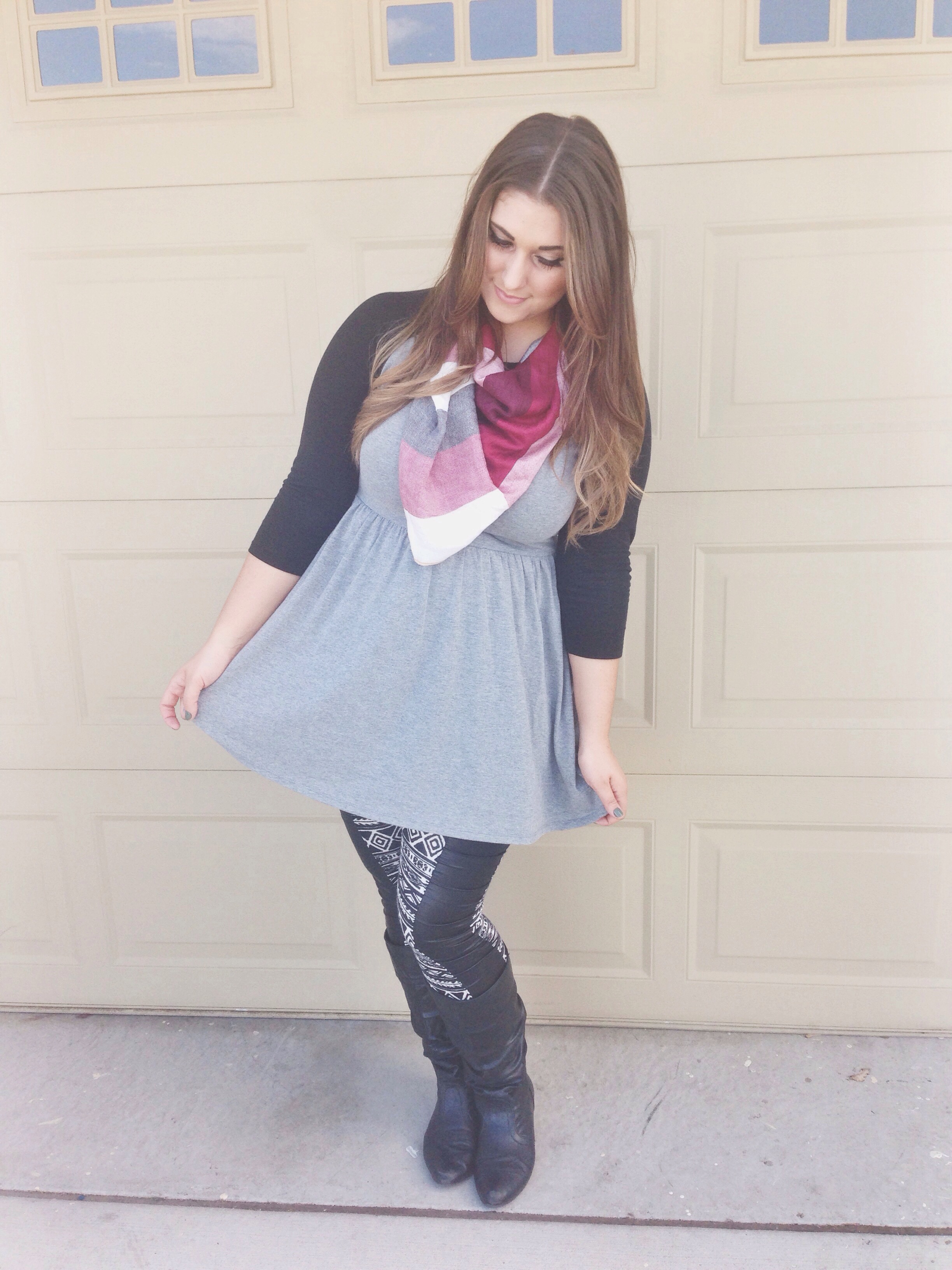 Before I landed on these leggings I had on some other tribal leggings, without the leather sides, & it looked bad! It was just too much pattern that clashed with the scarf. It’s funny how each element of an outfit really does make or break a look. Imagine this outfit without the scarf? Wouldn’t look right. Shorter black boots? Just wouldn’t work. Balancing out your outfit is key to making it a signature look.