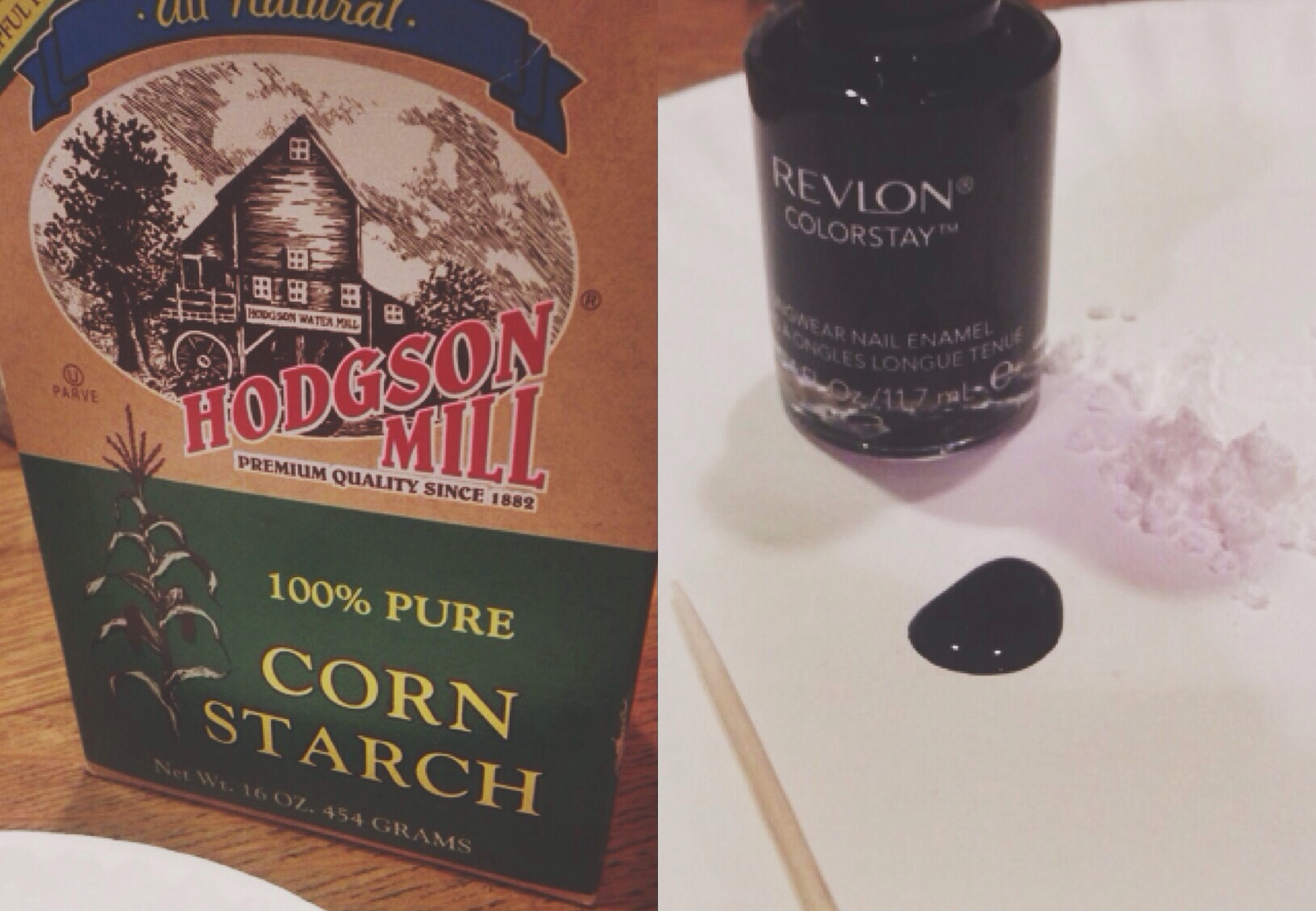 Slowly mix the corn starch & the nail polish together with a toothpick. You really only need a little bit of each.