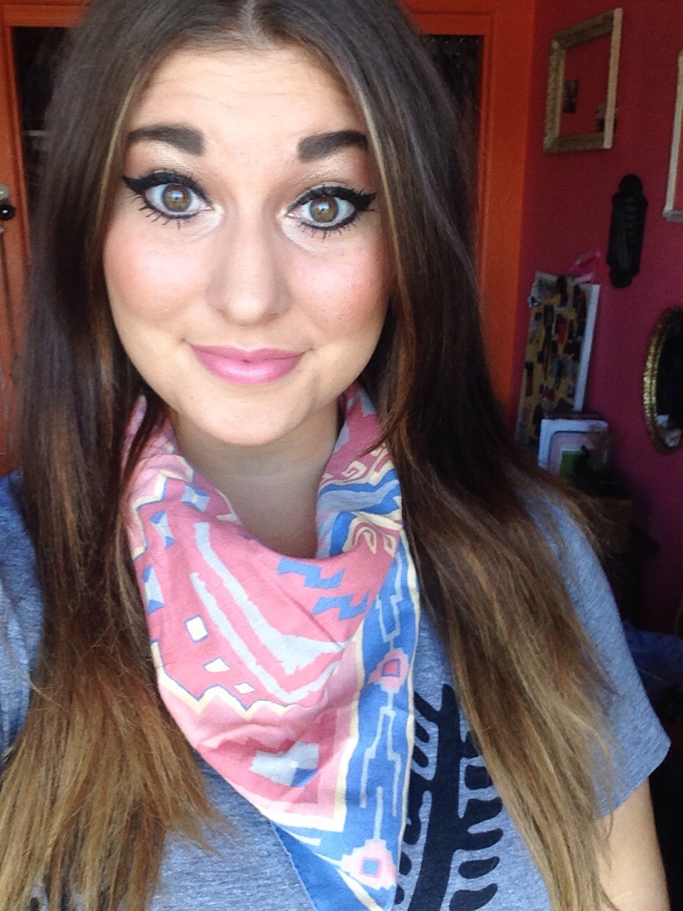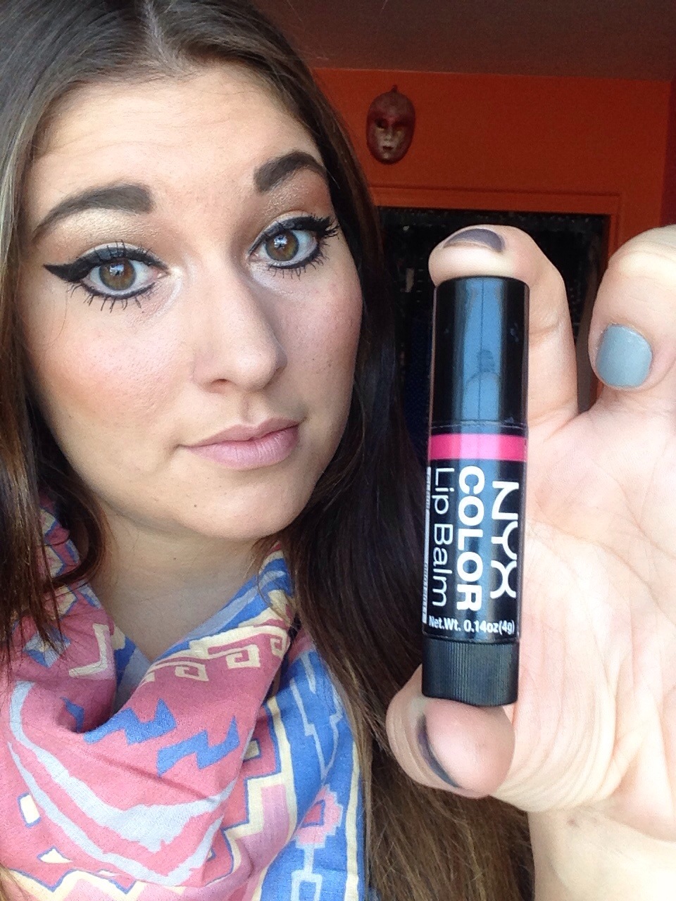 To top it all off I apply a lip color. I go back & forth between wearing lipstick or just tinted lip color balms. My favorite lipsticks are by REVLON & my favorite tinted lip color balms are by NYX. You can read more about that here. I chose this color because it went well with my outfit, which is weird because I hate matching things! And…