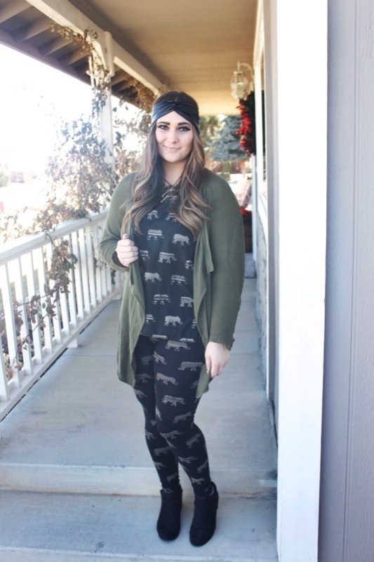 Top; F21 Leggings; F21 Booties; Kohl’s Cardigan; Kohl’s Necklace; F21 Headband; Monroe & Harlow