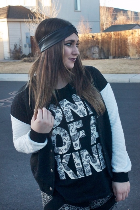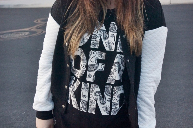 Anyway, I paired my two whimsical pieces with a black & white (shocker) quilted varsity jacket, my black suede booties, & my leather turban headband from Monroe & Harlow. Seriously, y’all should check out her site if you haven’t. Best headbands ever made!