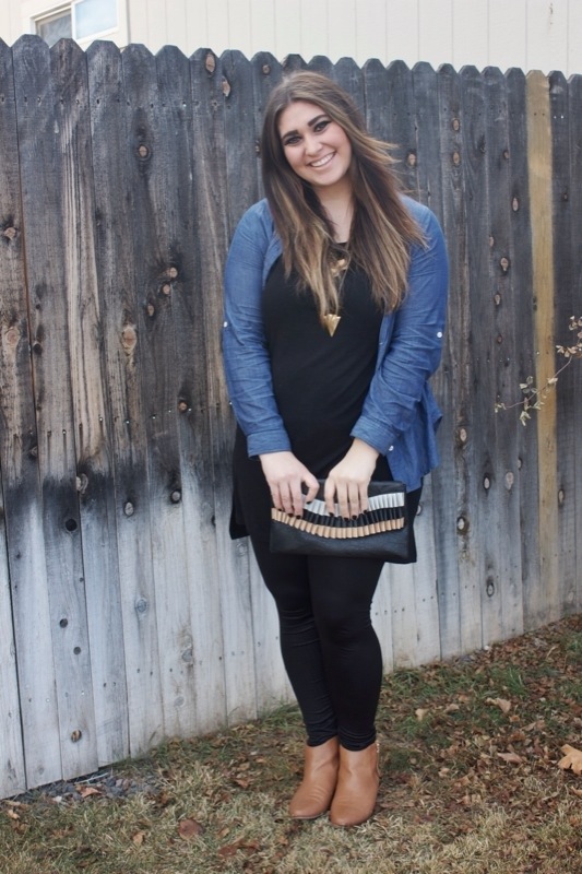 Dress; H&M Leggings; Ross Shirt; Old Navy Boots; F21 Clutch; Ross Whistle Necklace; F21 Arrow Necklace; F21 Wooden Geometric Necklace; Swallow’s Heart