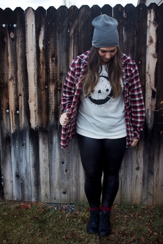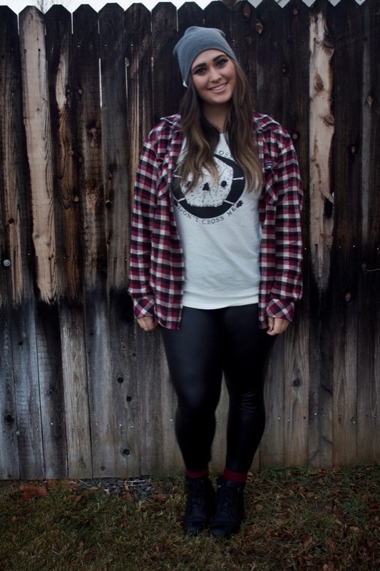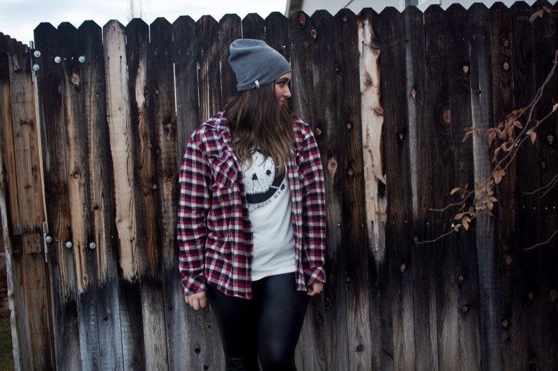Tee; Kinship Goods Flannel; JC Penny Outlet Leggings; Ross Boots; Sears Socks; F21 Beanie; Krochet Kids