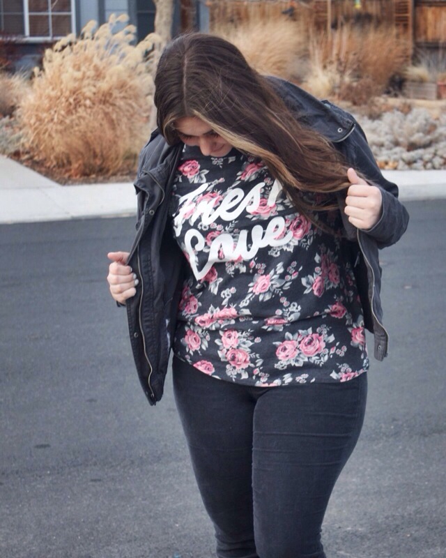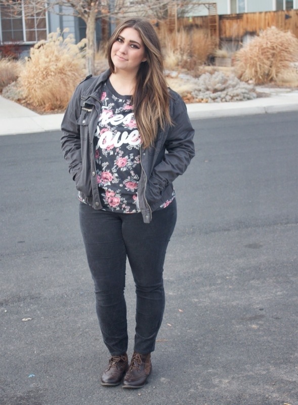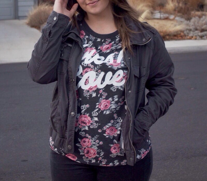 Do you ever feel like you wasted an outfit? Kinda like people may waste “the good surprise” on someone whose birthday party it is not. I feel like this all the time! Like I should have saved this dress for that occasion or that shirt would have gone way better with this outfit. I’m an avid outfit waster which probably has something to do with my uncontrollable second guessing… But shhh, we don’t need to elaborate on that! Anyways, this past Saturday I had on a great adventure outfit which consisted of a “cool” shirt, a trendy jacket, some hardly ever worn boots, & a pair of pants that I thought didn’t fit me anymore. I was dressed to the tee, literally for an outing. Wanna know what I did instead? Stayed in my house all day & ate food & watch movies with my mom, brother, & sister-in-law. I seriously only left my house to walk outside to take my outfit pictures. It was pretty pathetic. But honestly, it was quite nice. Did I end up wasting the coolest shirt like ever by just letting the four walls of my living room view it? Yes. But hanging out with my family was the best adventure I could have had that day because it’s always an adventure when I hang out with them.