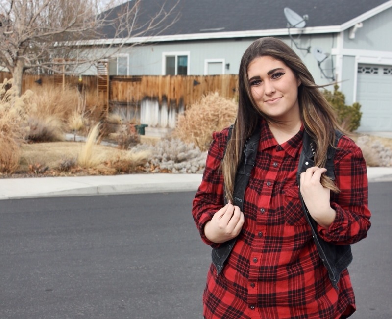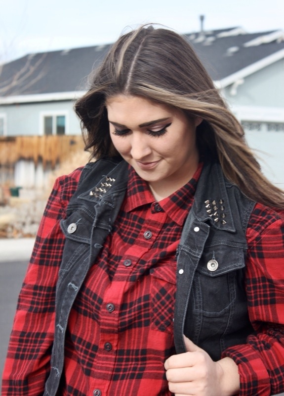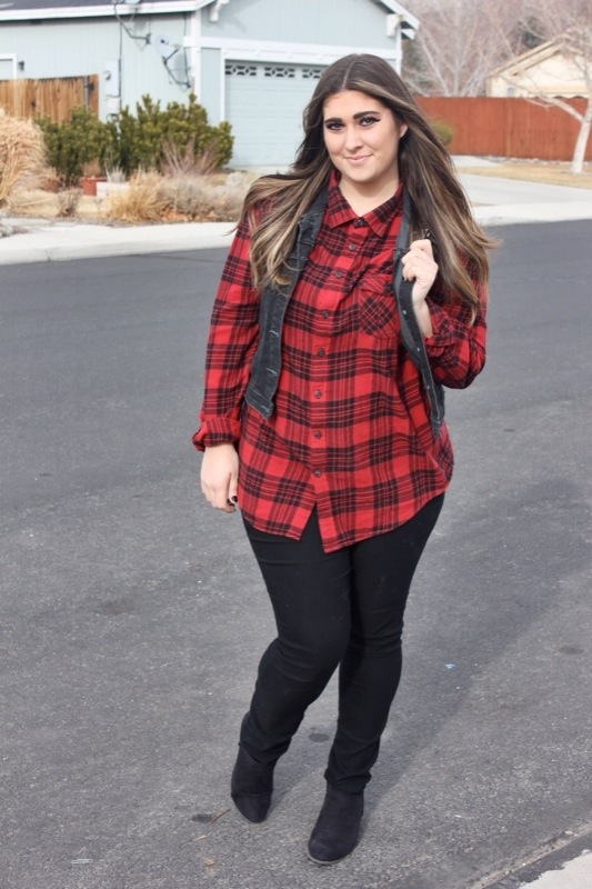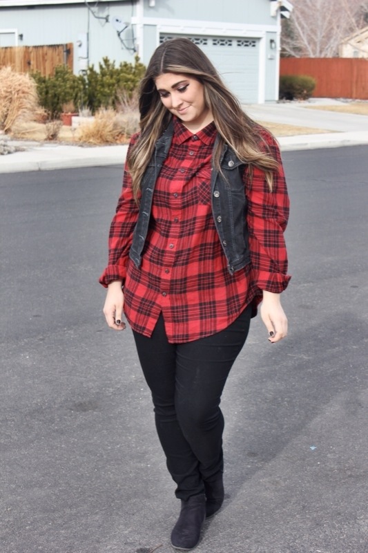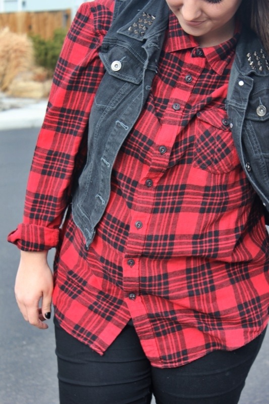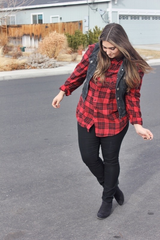 There’s just something about the colors red & black that make me swoon! It may be their fame from the checkers board & game pieces or something else entirely. But these two colors just look so good together! Especially in a plaid format. I bought this XXL red & black men’s flannel last year at target on sale for 16 bucks. It’s huge. Like HUGE guys. I normally wear it with leggings & it’s like walking in a giant blanket all day long. But yesterday I paired it with black jeans & a denim vest to try & give it a little more shape. It worked! I know this because my dad told me, “hey, I like this one today.” Haha my pops often looks at me strangely because of the outfit I out together. His reactions crack me up! But I where what I want & I hardly let his opinions give way to my decisions when it comes to fashion. If he had things his way, ‘d wear turtle necks & baggy boy pants for the rest of my life… No thanks dad! I’ll stick to making the men’s wear look feminine & chic.