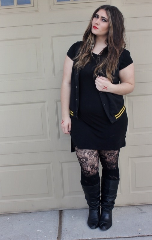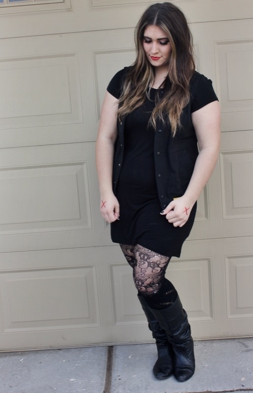 Dress; H&M Vest; Plato’s Closet Tights; Ross Boots; Kohl’s Knee High Socks; Kohl’s