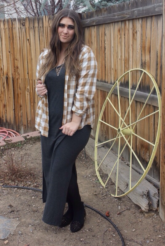 My two favorites were incorporated into my outfit yesterday: flannels & maxis. They’re just such cute trends! But who’s ever thought to combine them? Me, me, me! I love taking a flannel & wearing it as a sweater/jacket piece over a tee. But why not do the same thing with a dress? Exactly. It’s pure genius. And I should have done it sooner, especially with these colors! The grey of the maxi dress just looks so cool next to the white & gold plaid pattern of my flannel shirt. I adores this outfit yesterday. Not gonna lie though, I felt “big” in it because ideas wearing two oversized pieces that gave me no real shape. Sometimes that just sucks. Sometimes you feel like that in your clothes. Sometimes you’re the only one who notices that though!!! We are our worst critics, but can be our biggest supporters. Love yourself. Even on the days you feel “big”. Because no one sees you as a size except yourself.