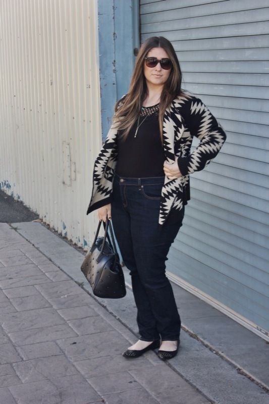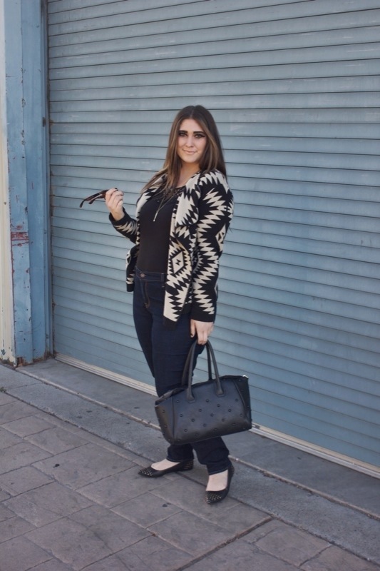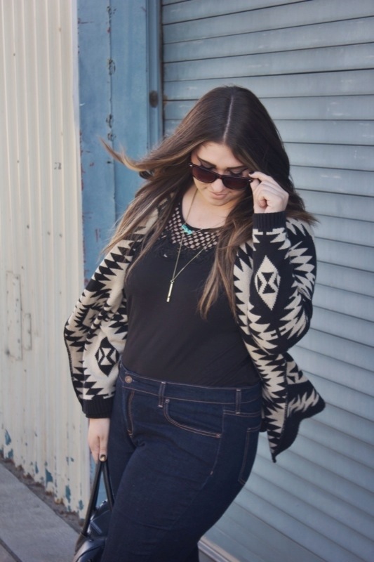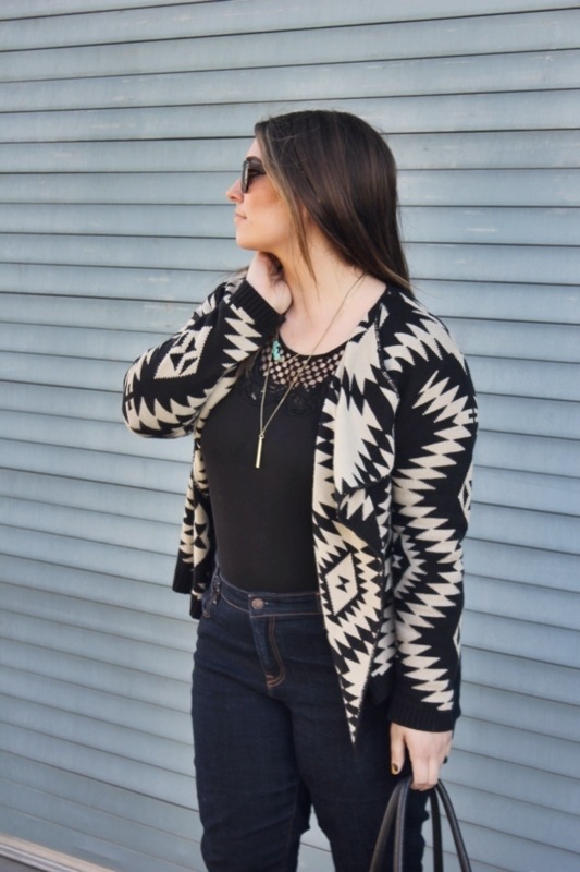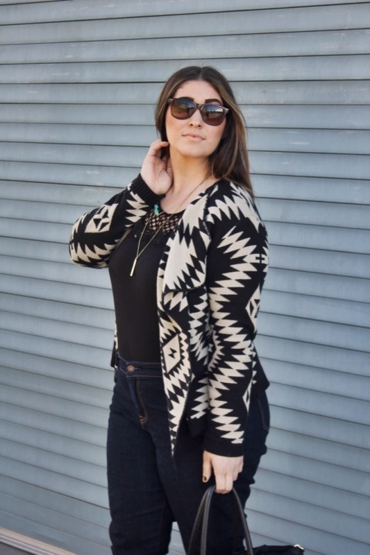 I was just telling my friend the other day that it kills me that sometimes I’ll only wear a piece I love one time per season. I don’t do it on purpose, but sometimes it just happens. I’ll buy something adorable heading into a season because it’s something that has caught my eye. But then I’ll start buying replica’s of said piece because I can’t get enough of the trend. Which normally results in the first piece receiving the least amount of love throughout the season. I hate that I do this, but I do! So I was so excited that it was cold enough yesterday to whip out this chunky aztec sweater from the tip top of my closet. I threw it over a plain black tee that I also hardly wear & my dark denim Skinnies. Funny thing, I absolutely hate jeans, but have slowly been falling in love with this pair. But only when I tuck my shirt in because it gives me the tiniest waist! So yesterday’s outfit consisted of ton’s of “I barely wear” pieces, but it totally worked as a perfect outfit for the day. I love when I can give all of the clothes in my closet some love & sunlight!