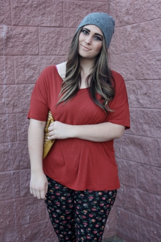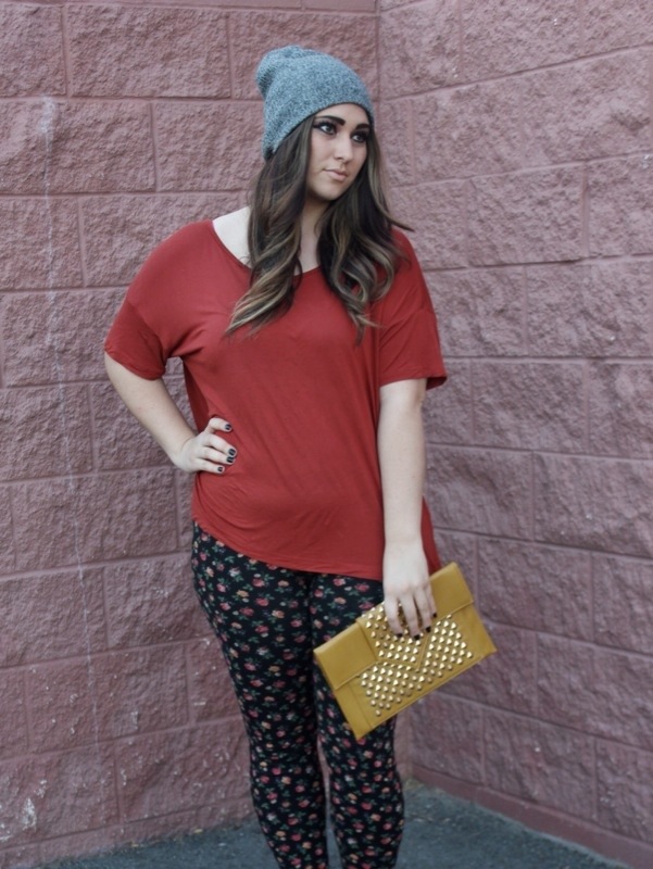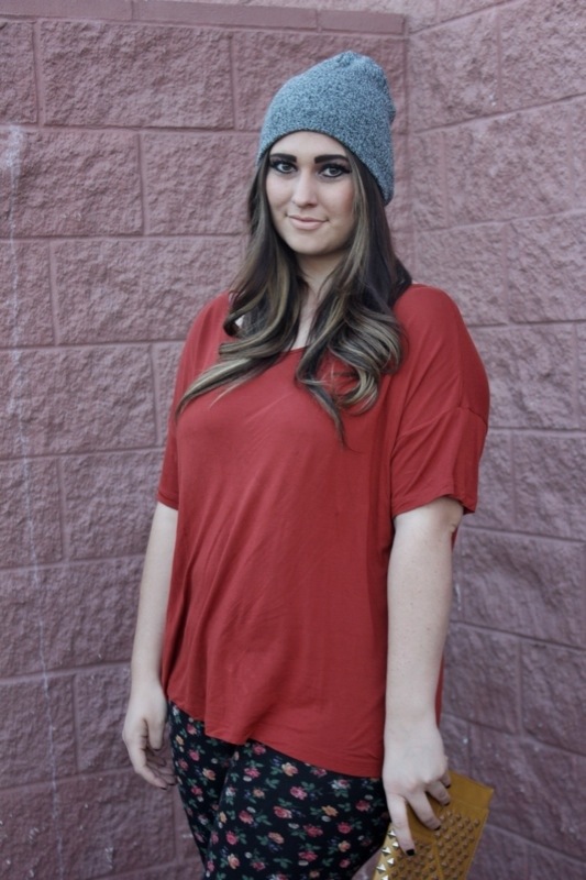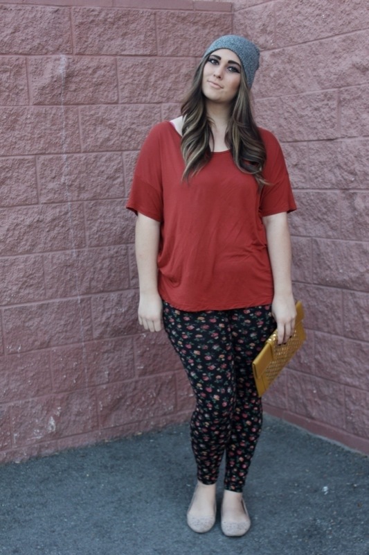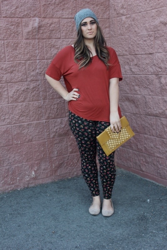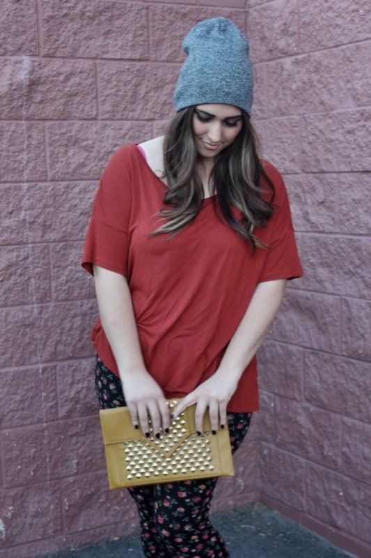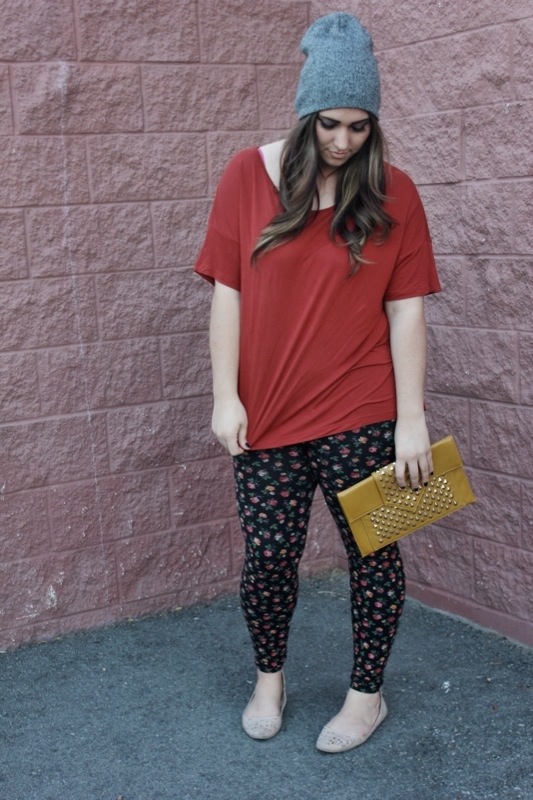 Top; H&M Leggings; F21 Flats; F21 Beanie; TopShop Clutch; TJ Maxx