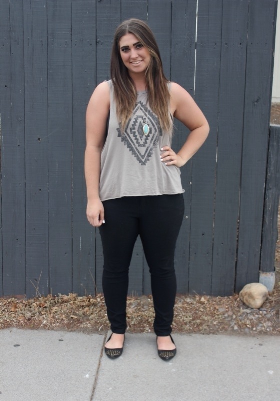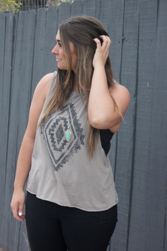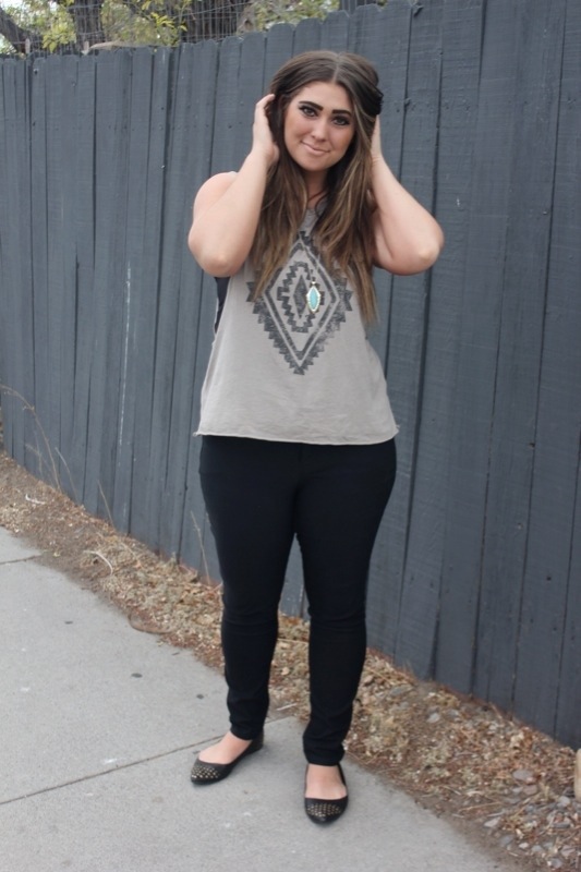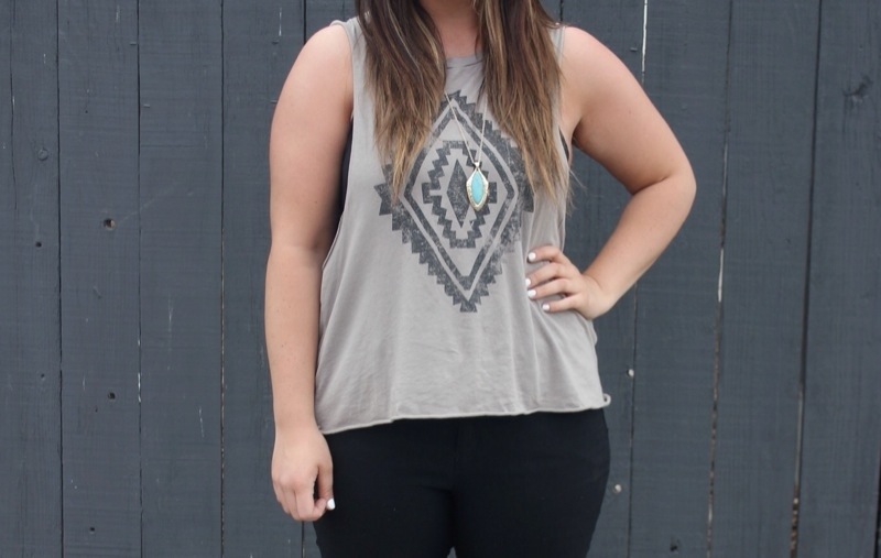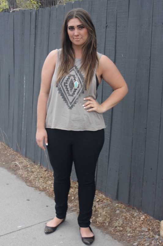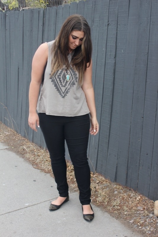 An outfit can sometimes be so simple. But I believe people tend to overthink what they wear. I often just throw things on according to texture, color, comfort, or feel & head out the for feeling complete. It doesn’t take much to make a great outfit. Just stick to the basic look you’re going for & don’t over do it. Yesterday’s out was so simply put together. Just a tribal tee & some skinnies. That’s it. Nothing too special. But the colors went well & my shoes & simple turquoise necklace kept the look fresh. I even felt a little confident wearing sleeveless shirt yesterday! What a win! I fight that battle daily during nice weather, so not fun. But yesterday I rocked it & didn’t care what anyone thought!