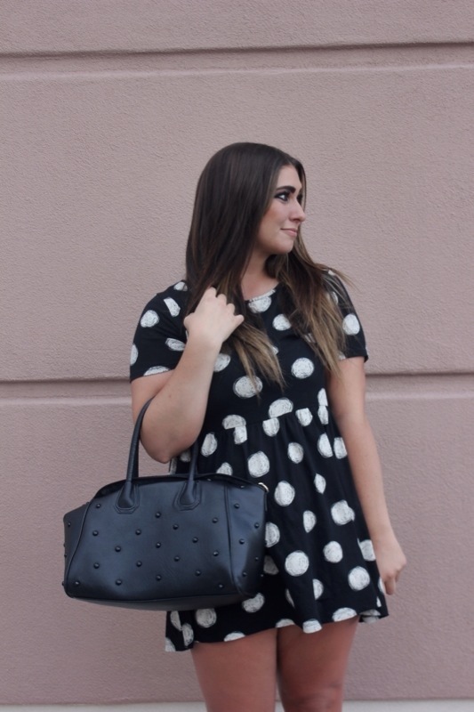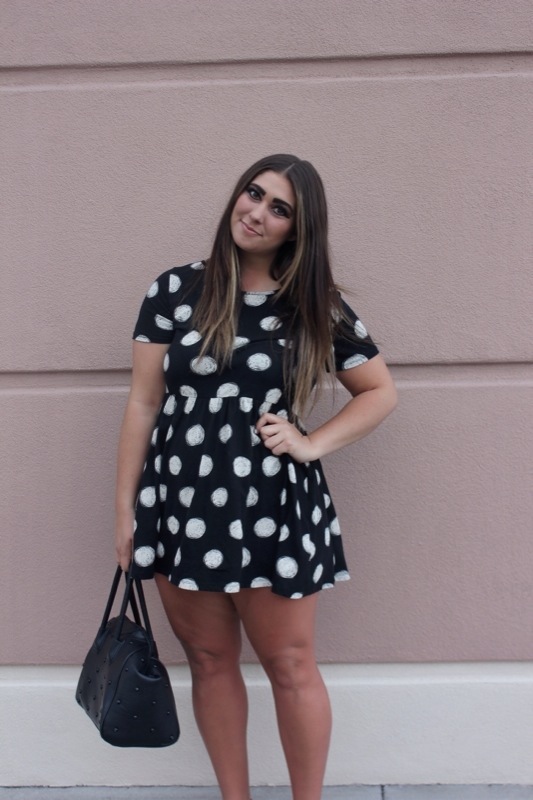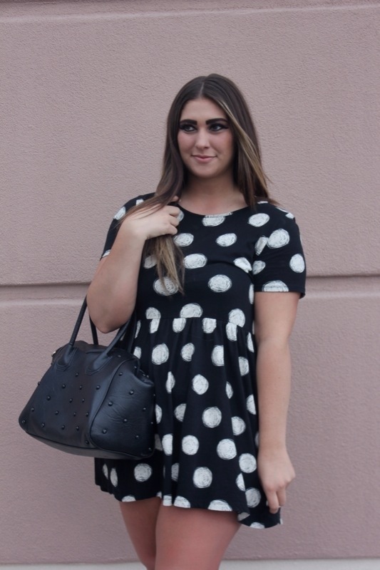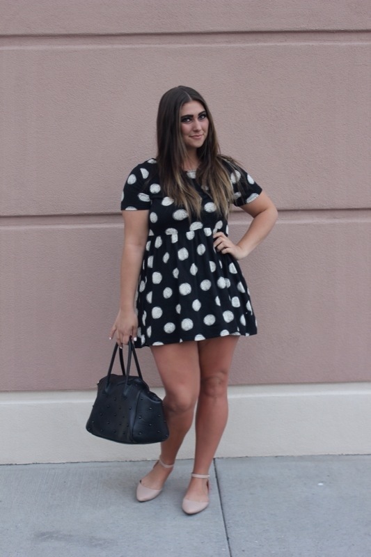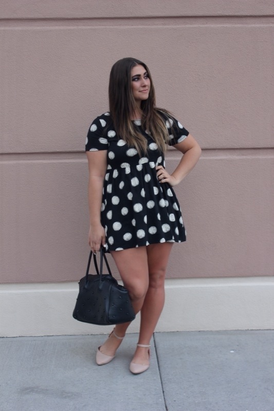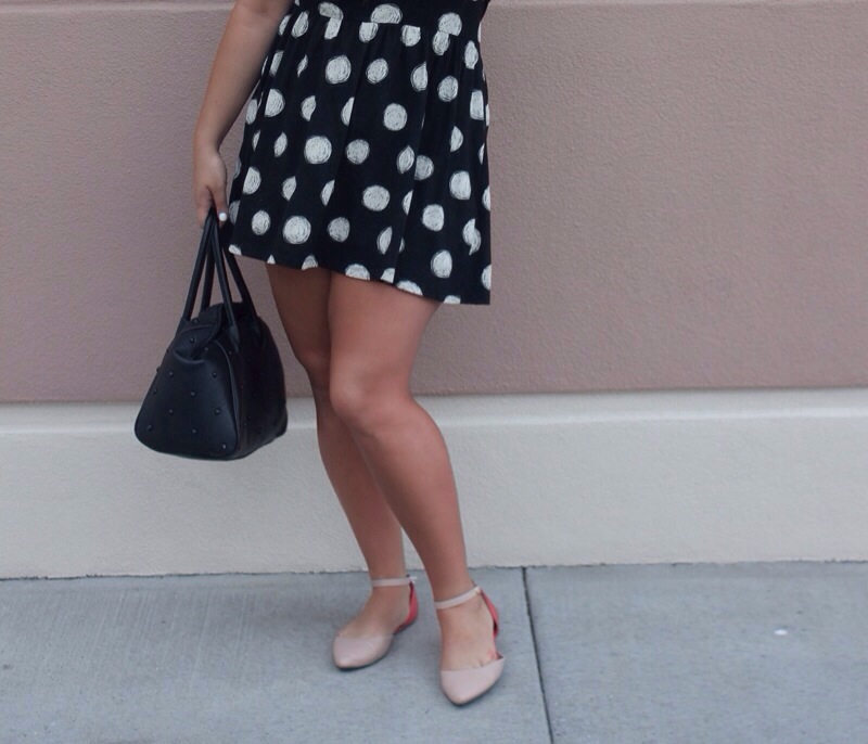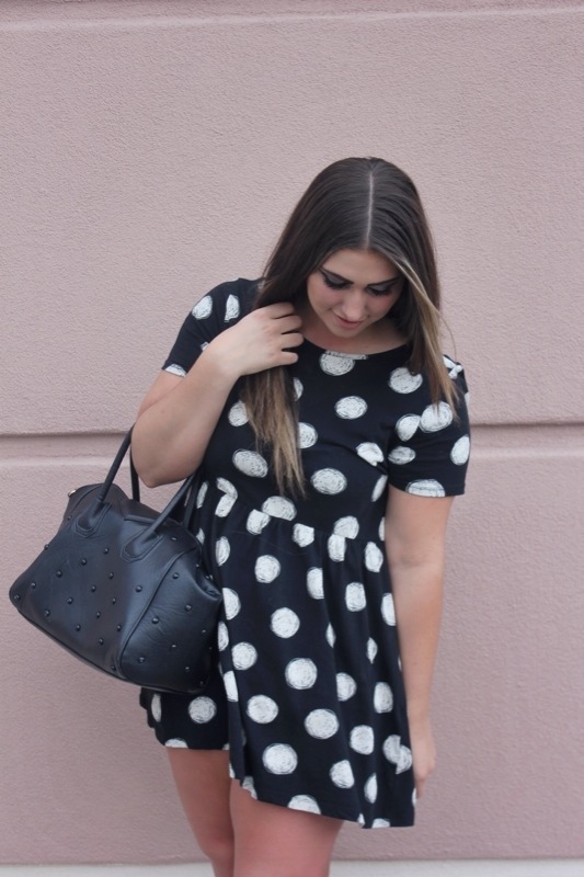 We’re coming to the days of two piece outfits, just a dress & a pair of shoes. It’s the simplest of outfit seasons & I’m sorta looking forward to it. Dresses are my all time favorite thing to wear & you can catch me wearing one almost every day during summer. They are just so flirty & fun & lady-like that I don’t know why every girl doesn’t make them an everyday thing. From baby-dolls to maxi dresses, high to lows, & midi’s. The options for summer dresses are endless, effortless, & game changing. Yesterday I wore my 4 dollar black & white big polka dot dress that I can tell will be a favorite of mine this summer. The big print is easy to dress up & style with jewelry, vests, shoes, & headbands. I kept it simple though with just a two toned leather ankle flat & that’s all that yesterday’s look needed. Simple, classic, & with just enough “pop” of the pink to dress it up & make it my own. I can’t wait to style this dress again!