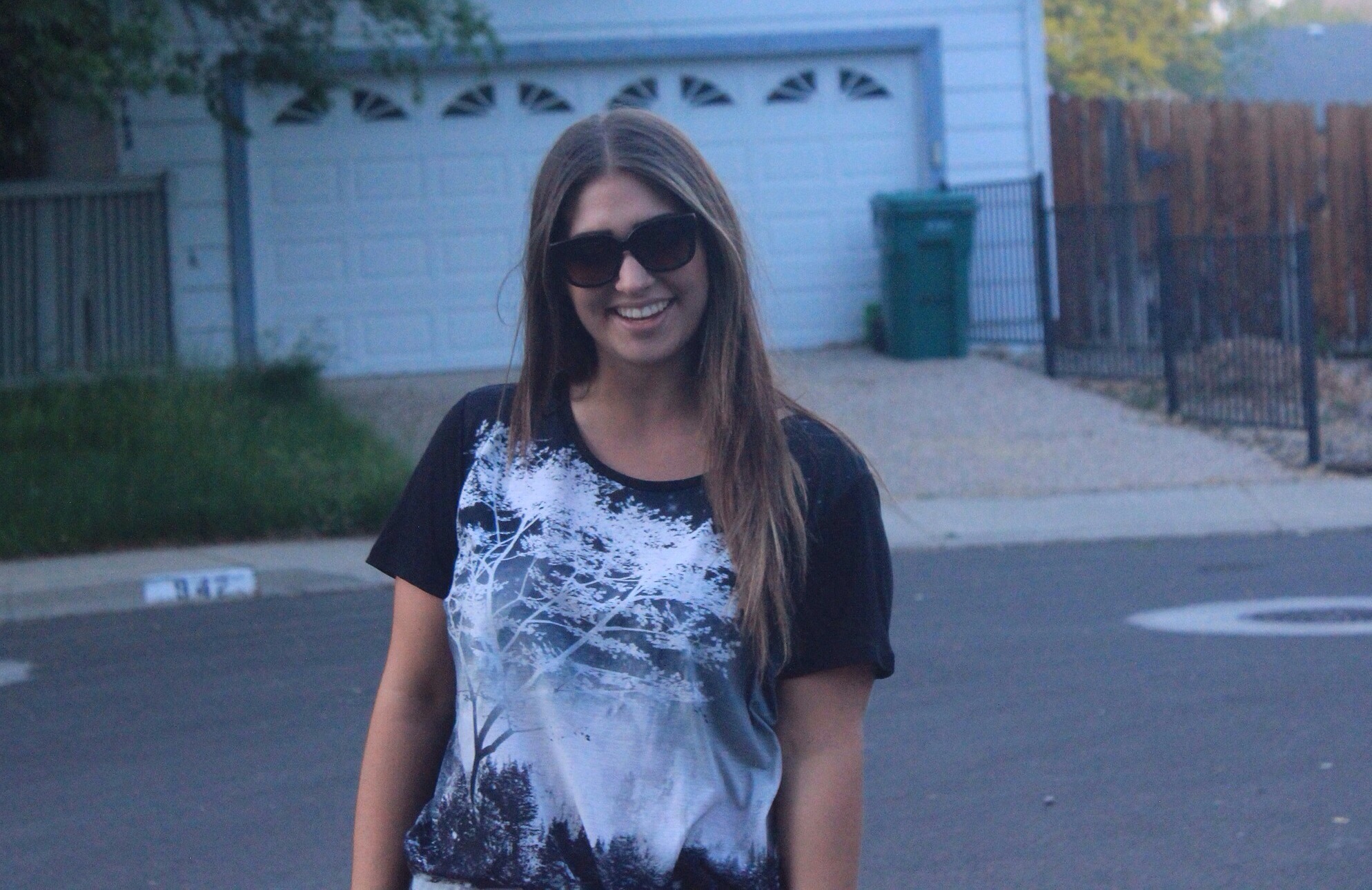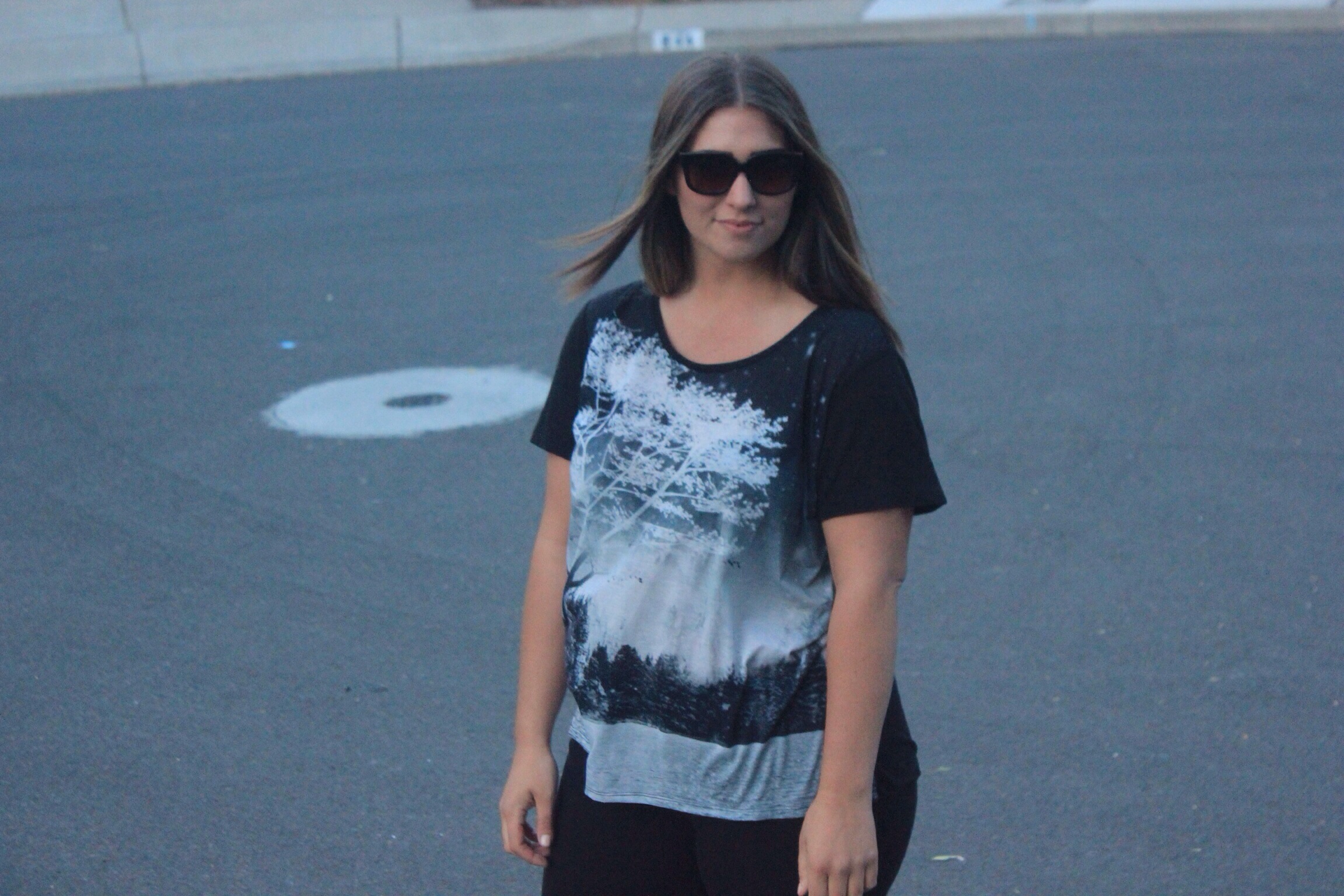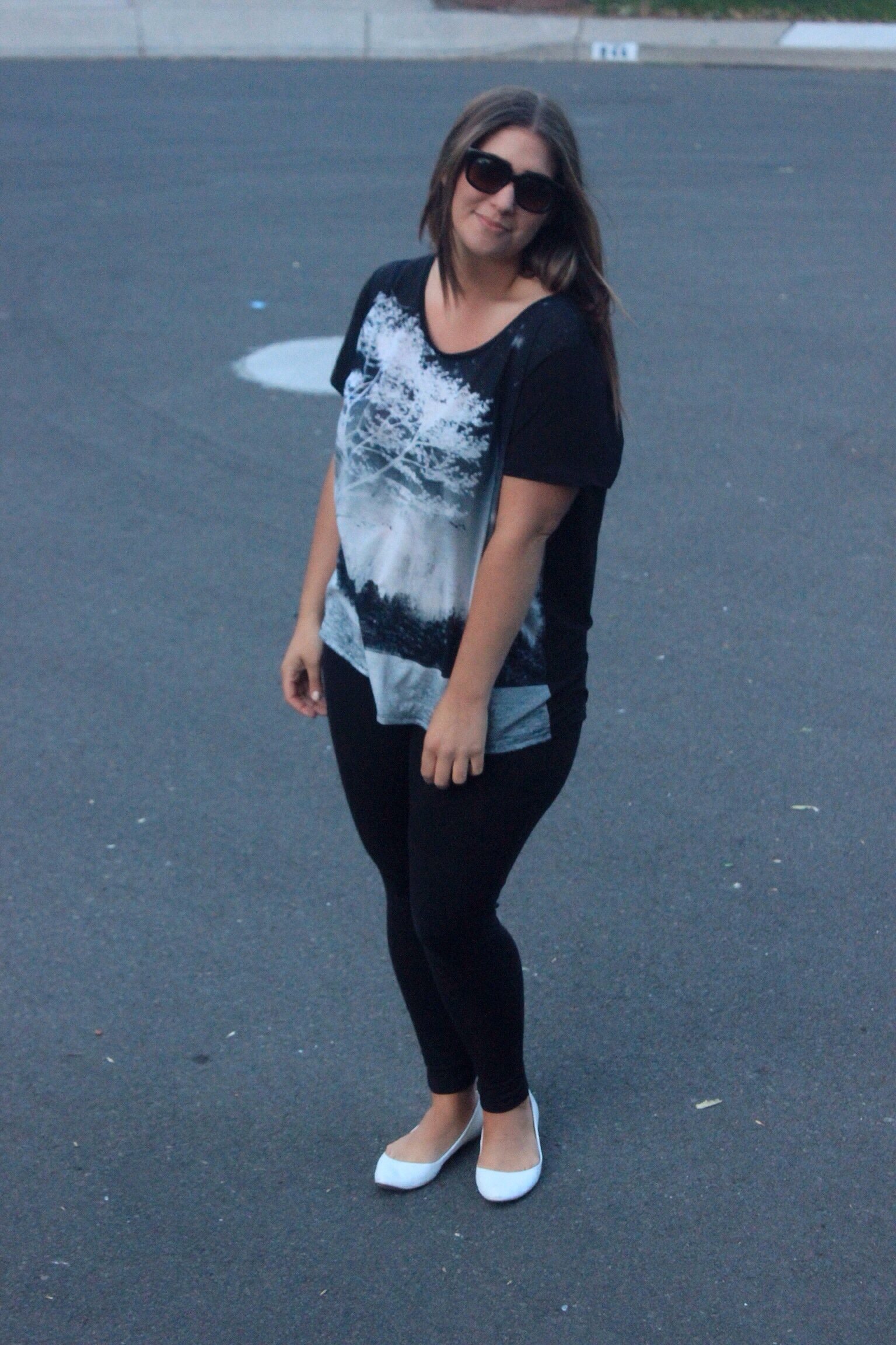 Top; H&M Leggings; Walmart Shoes; Burlington Coat Factory Sunnies; Ross