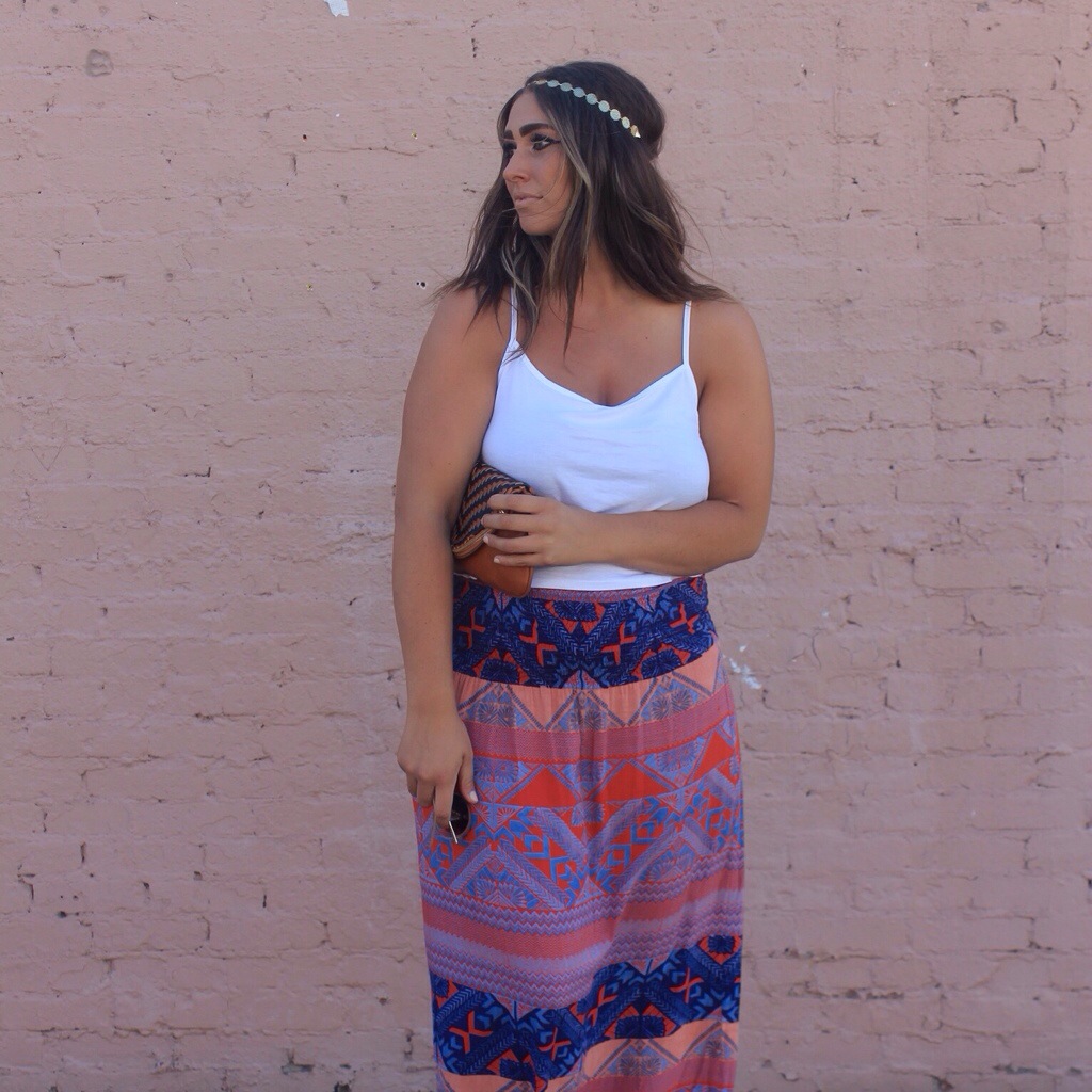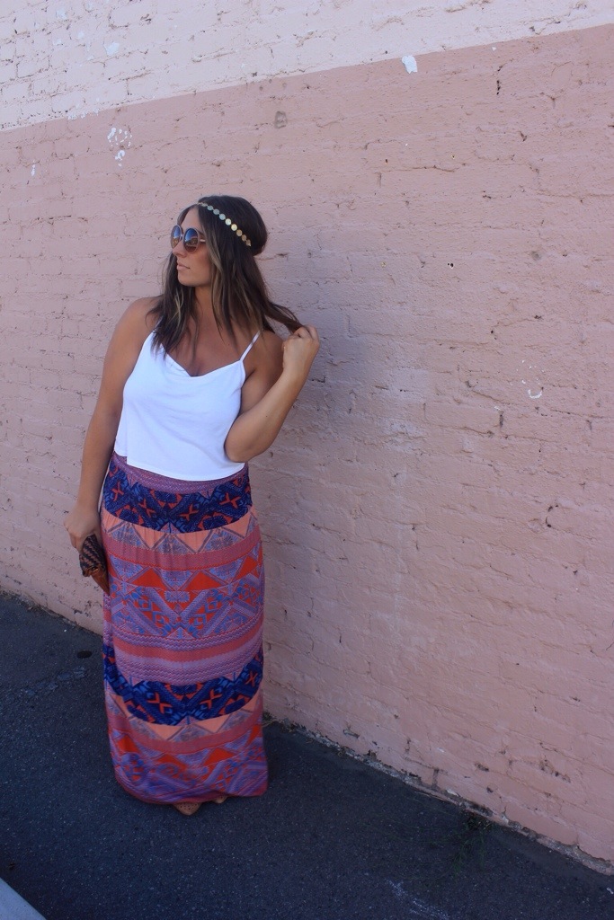 This outfit from last Friday was just too good not to post for you all to see. It was the perfect mix of boho, summer, & grecian goddess. That’s totally been my vibe lately. I’m back into patterned maxi skirts & simple tops & never straying too far away from golden headbands. I will wear & re-wear this look all summer & be completely happy about it.