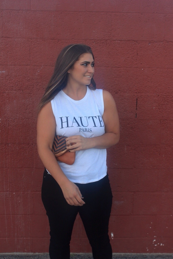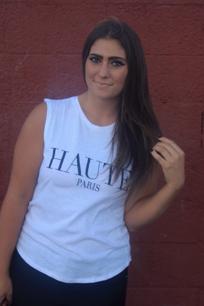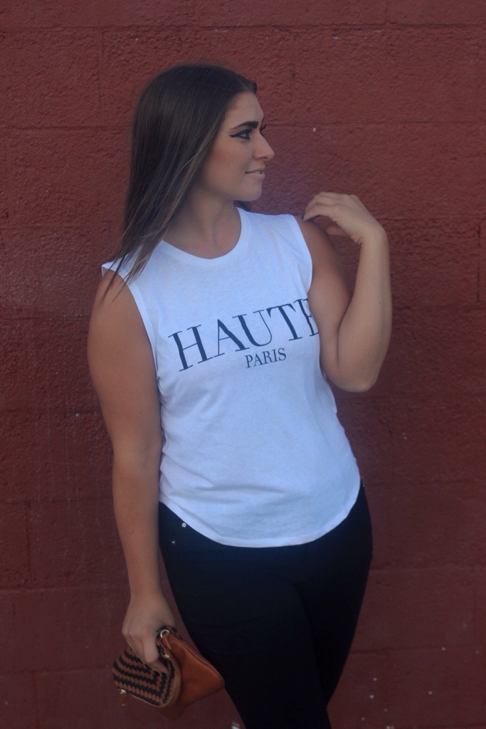 I’m into white muscle tees lately. No idea why. But I’m just loving the look of them for summer & they’re all I can think about. This simple one I found at Ross for only 5 bucks. FIVE BUCKS. Yeah, like who passes up a deal like that? No one! Especially not me. And this phrase just sealed the deal for me. Honestly, I had no idea what it meant at first but I knew it meant something fashionably cool. So I looked it up. Just now. Like just now, literally. Google defines it as “fashionably elegant or high-class” which is what I was guessing. And in modern France, haute couture is a “protected name” that can be used only by firms that meet certain well-defined standards which is super snobby & totally a Paris thing to do. I kinda love it. I don’t agree with it, because I of course shop super cheap & affordable. Where I imagine this “standard” in Paris is a higher quality than anything I would ever even dream of owning. But I like the attitude behind it & that’s why I rocked it.