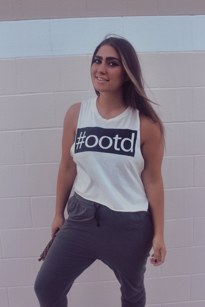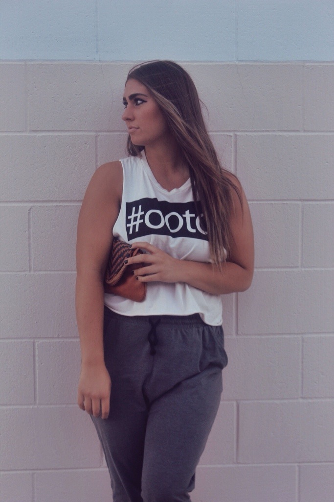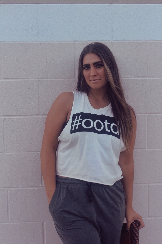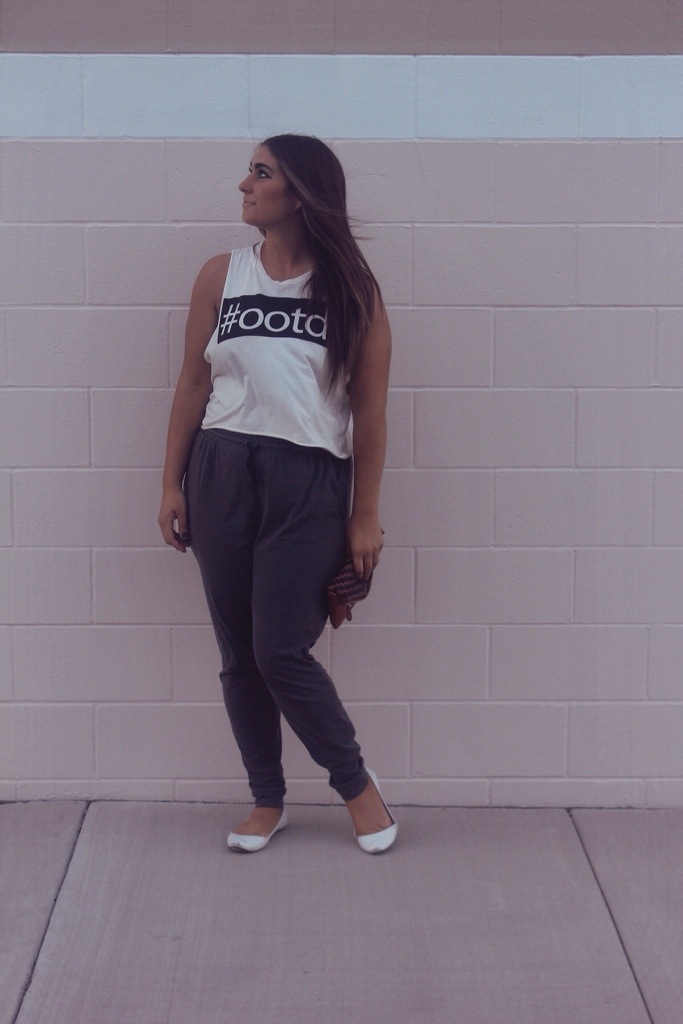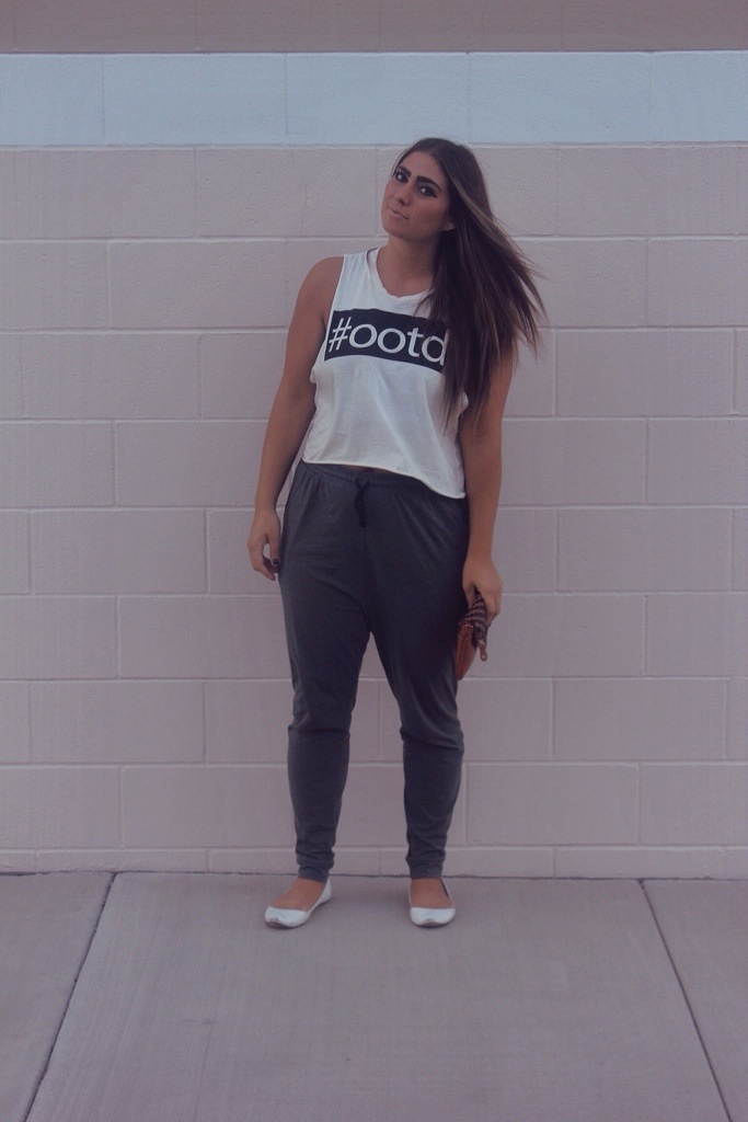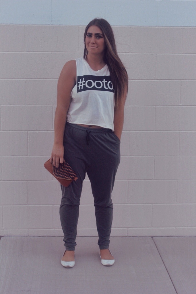 Muscle Tee; F21 Joggers; H&M Flats; Burlington Coat Factory Clutch; Ross