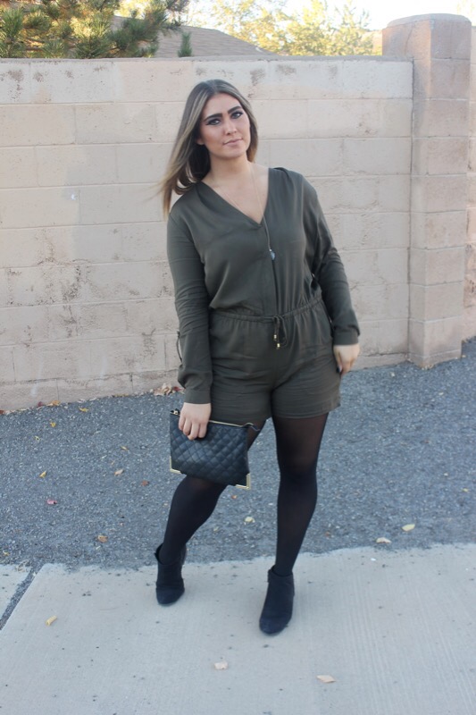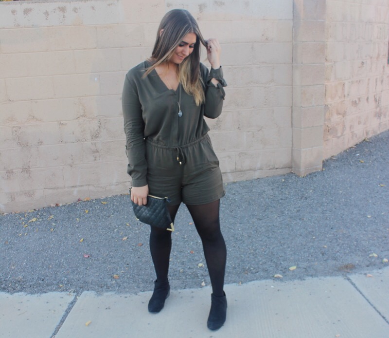 Romper/ H&M Tights/ Kohl’s Booties/Kohl’s Clutch/ Forever 21 Necklace/ Forever 21