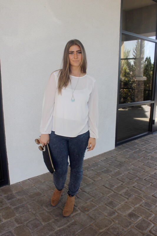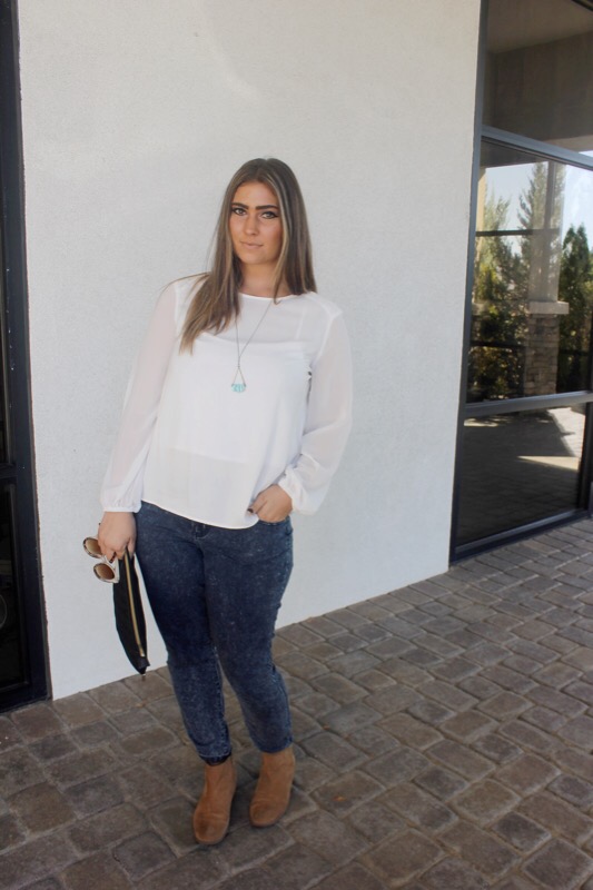 Wanna know the first thing I think when I see these pictures? I should wear white more often! I mean black is almost always my go-to color. But then I see these pics & how great & bold the color can be & I think white should be my new black. Seriously. I forget how refreshing the brightness of it can be. Especially in the form of this blouse! I got it on sale for $11 (score!) & want to wear it everyday. It went great with my faux acid washed corduroy jeans & brown ankle boots.