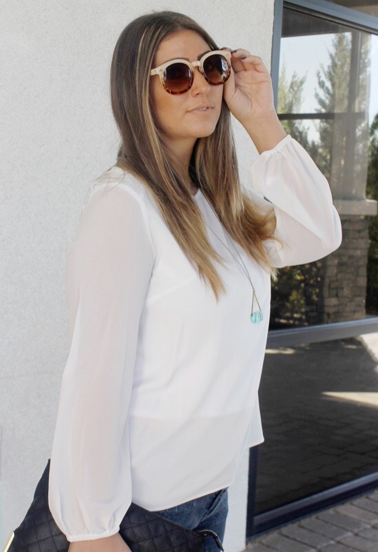 My favorite part about it has to be the boho vibe sleeves & shredded layer texture on the shoulders though. When shopping for a staple like a white blouse to put in your closet, look for something that gives it character. Something that says it belongs to you for a reason. Whether it be because of the buttons down the front, the bow tie hanging in the middle, or the high neck collar. Don’t let it be dull & boring, but give it life so that it makes your outfit & you come alive. Long live the white blouse & all it’s clean color glory!