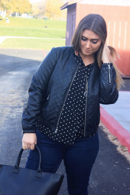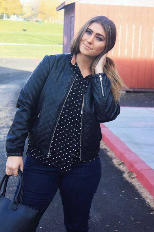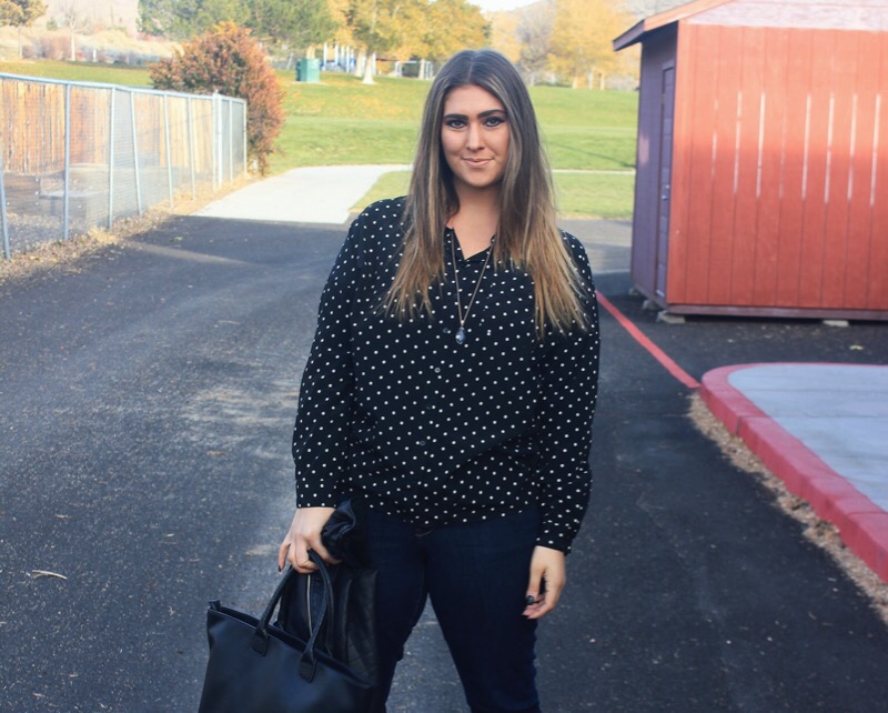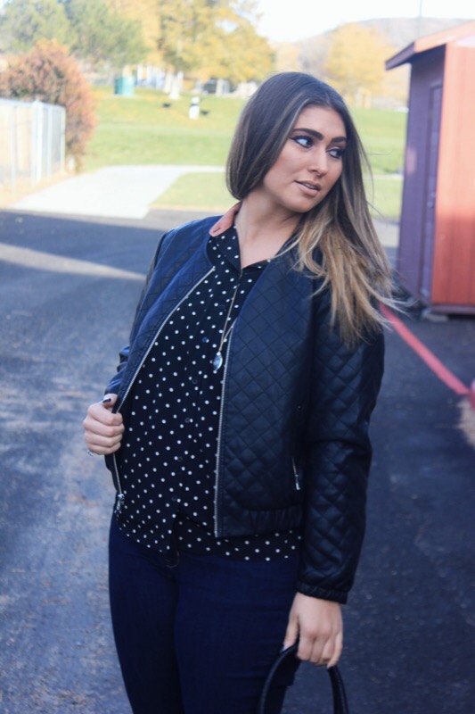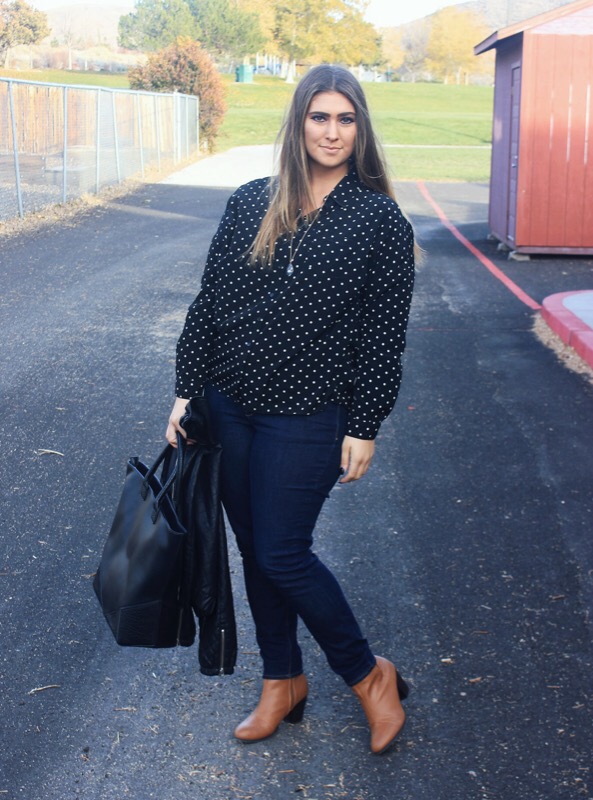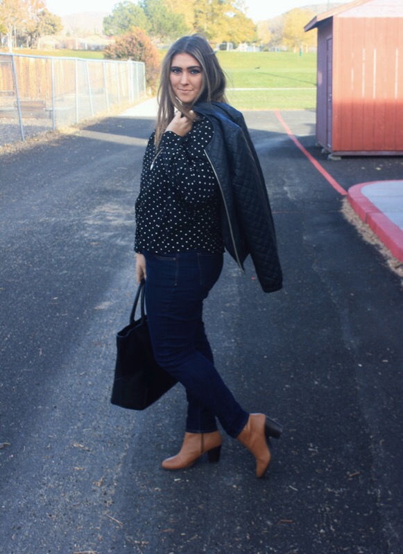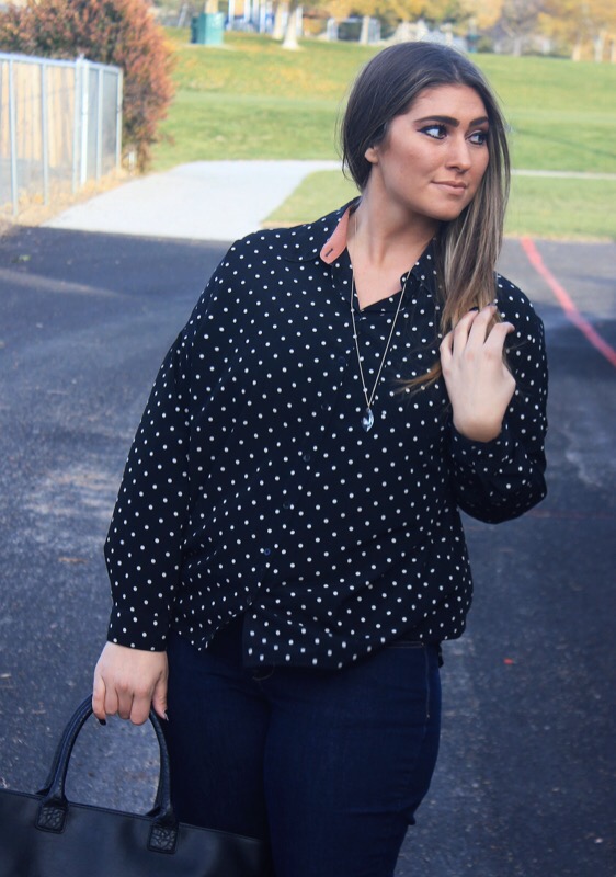 There used to be two things that I was known for awhile back: always wearing polka dots & never wearing jeans. In this outfit I’m wearing both! Who have I become?!? First things first, polka dots were my jam a few years ago when I was in my pin-up girl, cat eye sunglasses, & straight bangs phase. I know, but I rocked it. I seriously wore this look 3-4 times a week & almost always for sure on Sundays. It was who I was & was forever going to be. But back then I also never wore jeans. Like ever. Never. You couldn’t find me in em. The only time you would, would be on laundry day when I literally had no other pants to wear. I just felt that they were too plain & basic & I preferred leggings or dresses over them.