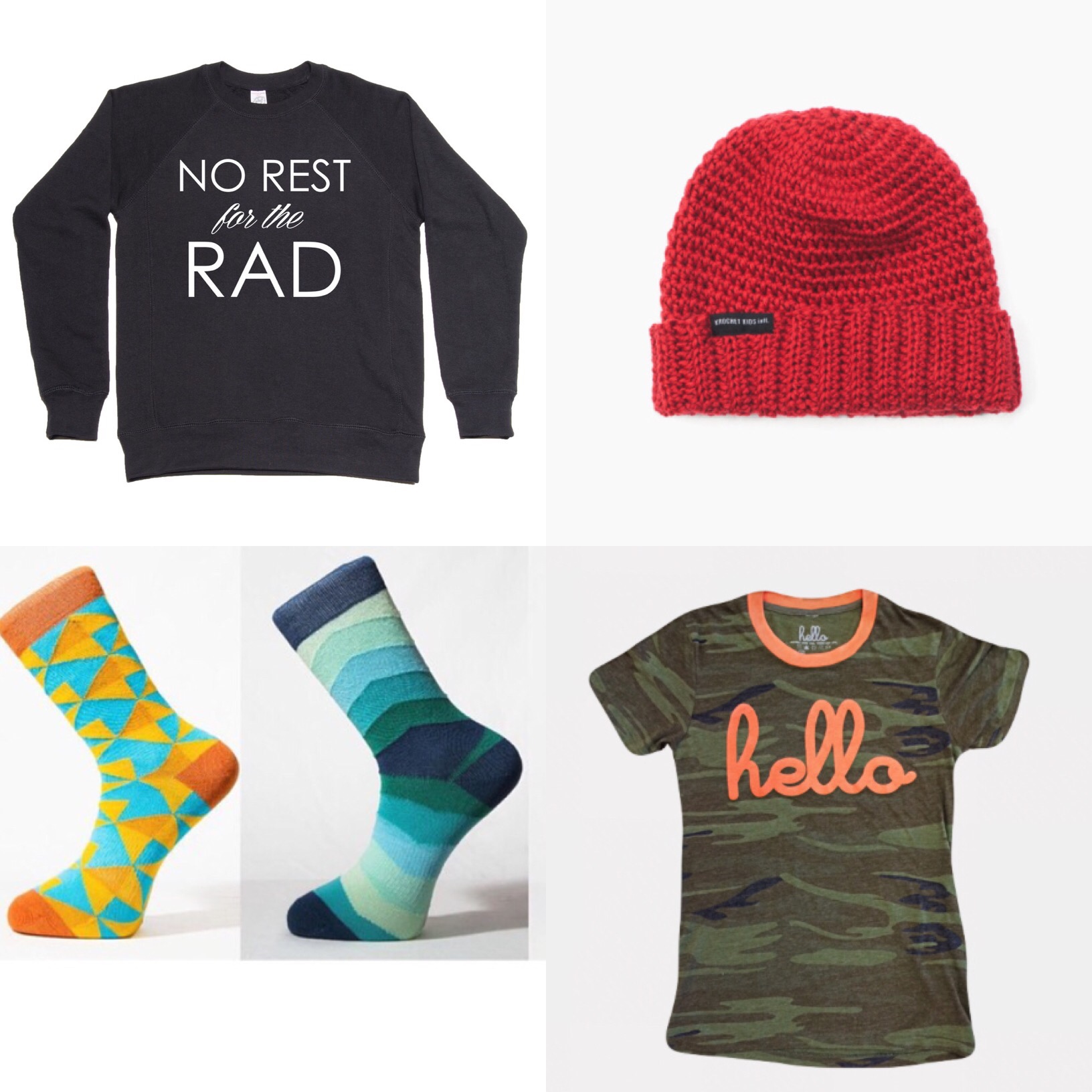 Guys want simple, comfy, & classic things. What better way to do that then with these awesome brands. Whether he’s wearing this No Rest for the RAD. crewneck from Top Knot Goods or this Krochet Kids beanie known as The Jackson he’ll be cozy all winter for sure. For a simple guy get him this camo tee from Hello Apparel & he’ll blend right in. And for the business guy in your life who still likes to express himself, get him these exotically printed socks from What the Sock. These guys are local here in Reno, so check out their site & support them!