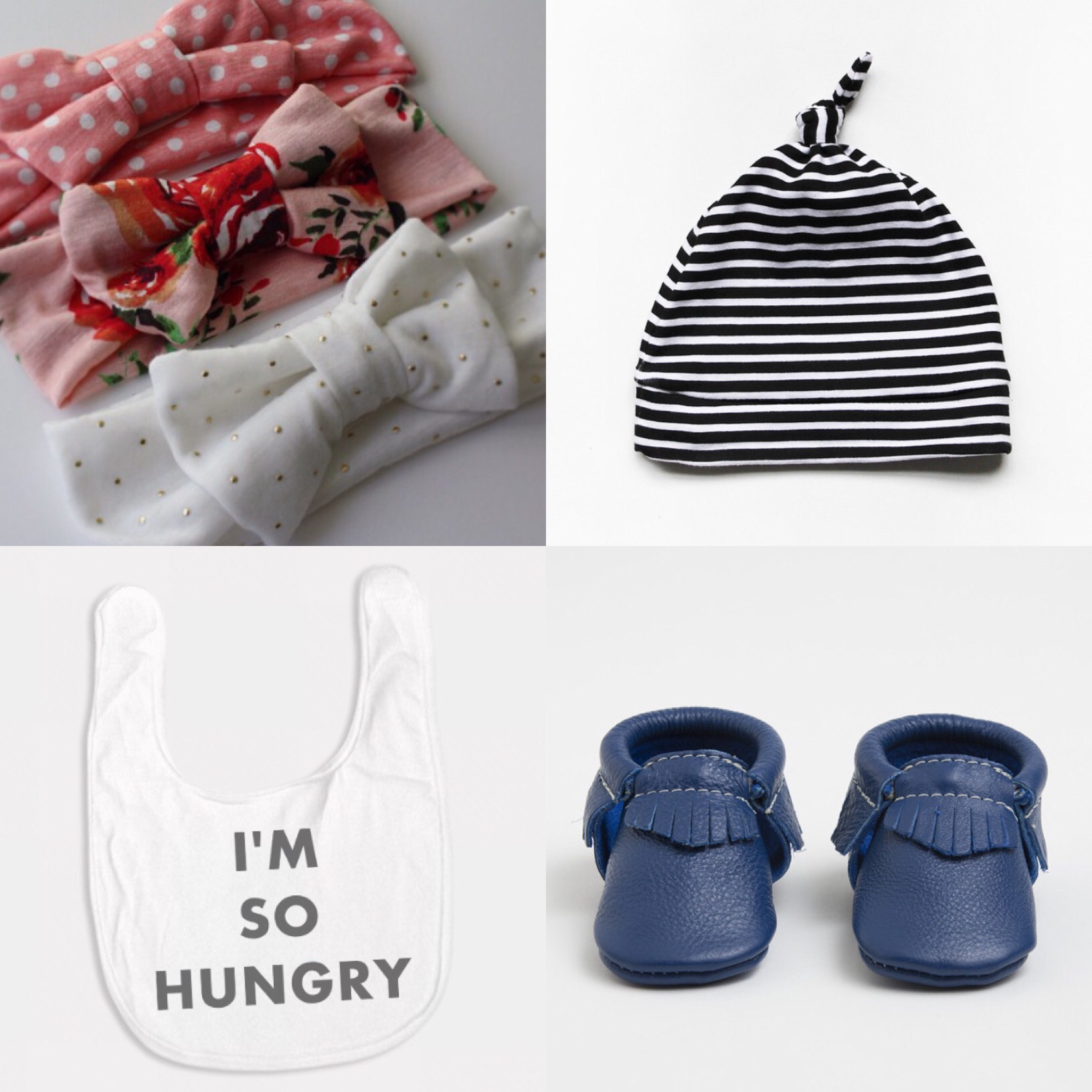 Let’s be real, I have a thing for babies. One would say they are my people & I speak their language. It’s true. So take it from me that I know what they’ll like. First up is adorable handmade headbands from Monroe & Harlow based out of California. I love the owner & she crafts them from newborn to little girl (and even adult) sizes in any fabric or design you want. Seriously the most comfortable headbands I have ever worn! Another favorite kid brand of mine is Little Hip Squeaks . They’re another handmade brand based out New York with minimalistic neutral design. They make everything from beanies for babies, to onesies, jumpers, blankets, dresses, & headbands. I wish I had kids of my own so they could rock these prints every day! The ever so popular Freshly Picked baby moccasins that come in almost every color imaginable are a must have for your tots. And so is this adorable & extremely affordable I’m So Hungry Bib from Hello Apparel. It’s witty & I love it!