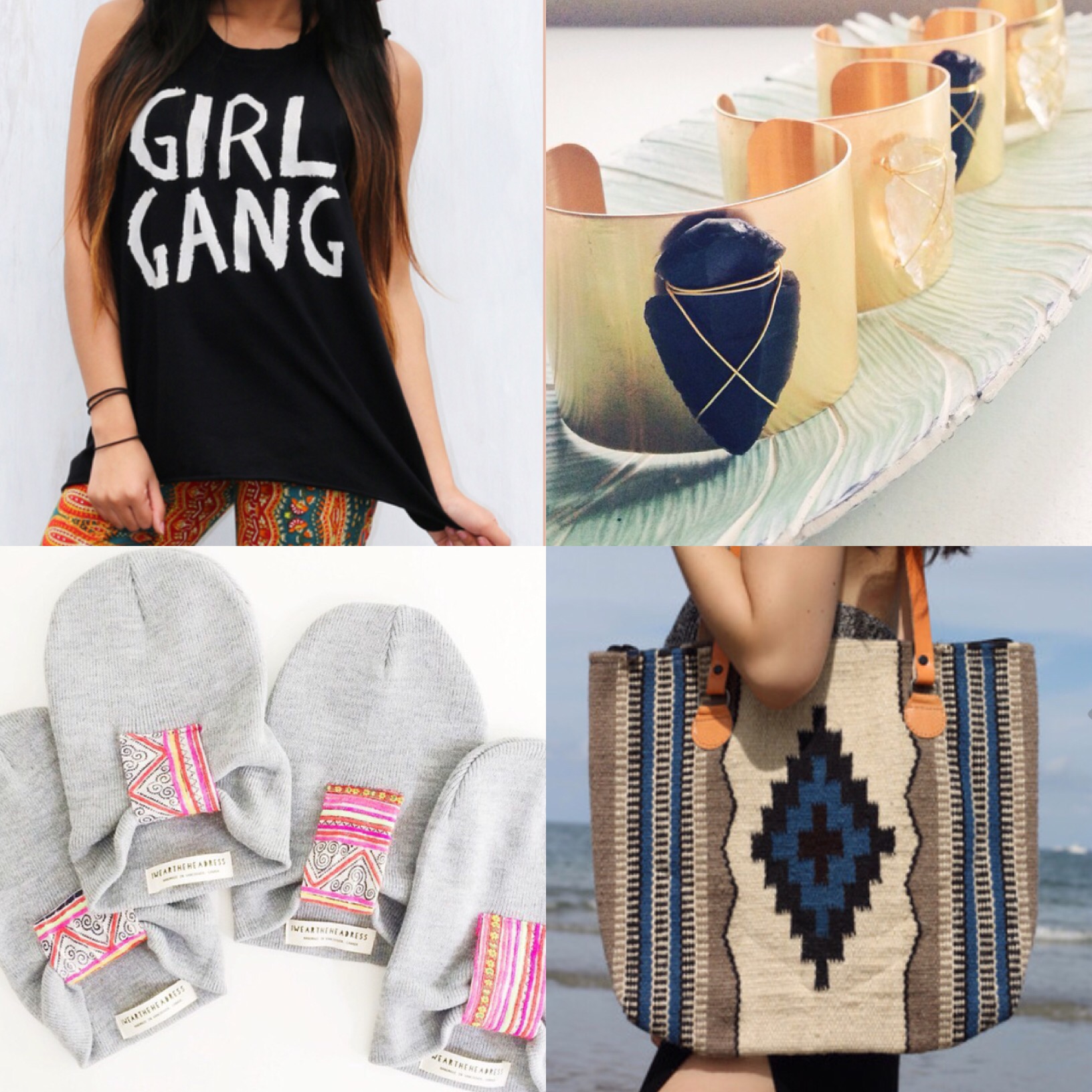These are some of my favorite brands & your best gals will love them too! This Girl Gang tee from PYLO is a must for any one of you chicks that will be with you til the end. And these beautiful Crystal Arrowhead Cuffs from Swallow’s Heart are the most bangin handmade arm candy I have ever seen. Want more handmade products? Okay. Try out these beanies from I Wear The Headress or these urban Boho Bags from Monroe & Harlow which are too cute to pass up!