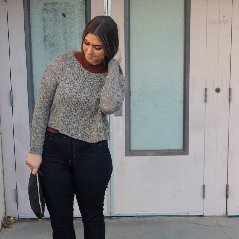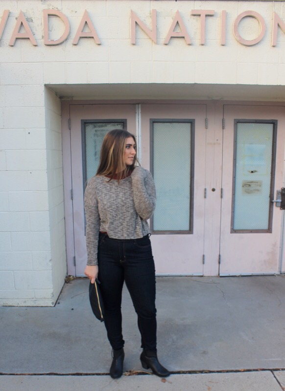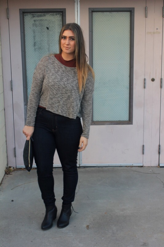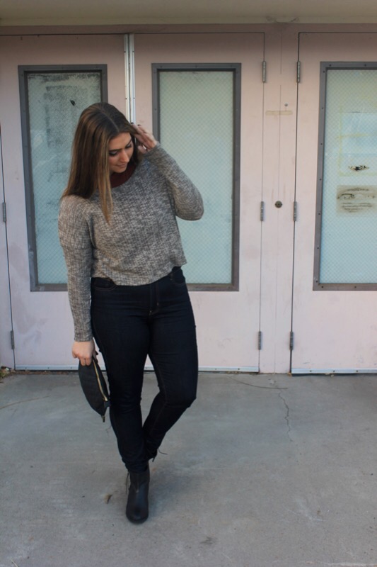 Sweater/ Forever 21 similar Turtle Tank/ Forever 21 similar Booties/ Forever 21 Clutch/ Forever 21 Jeans/ Old Navy