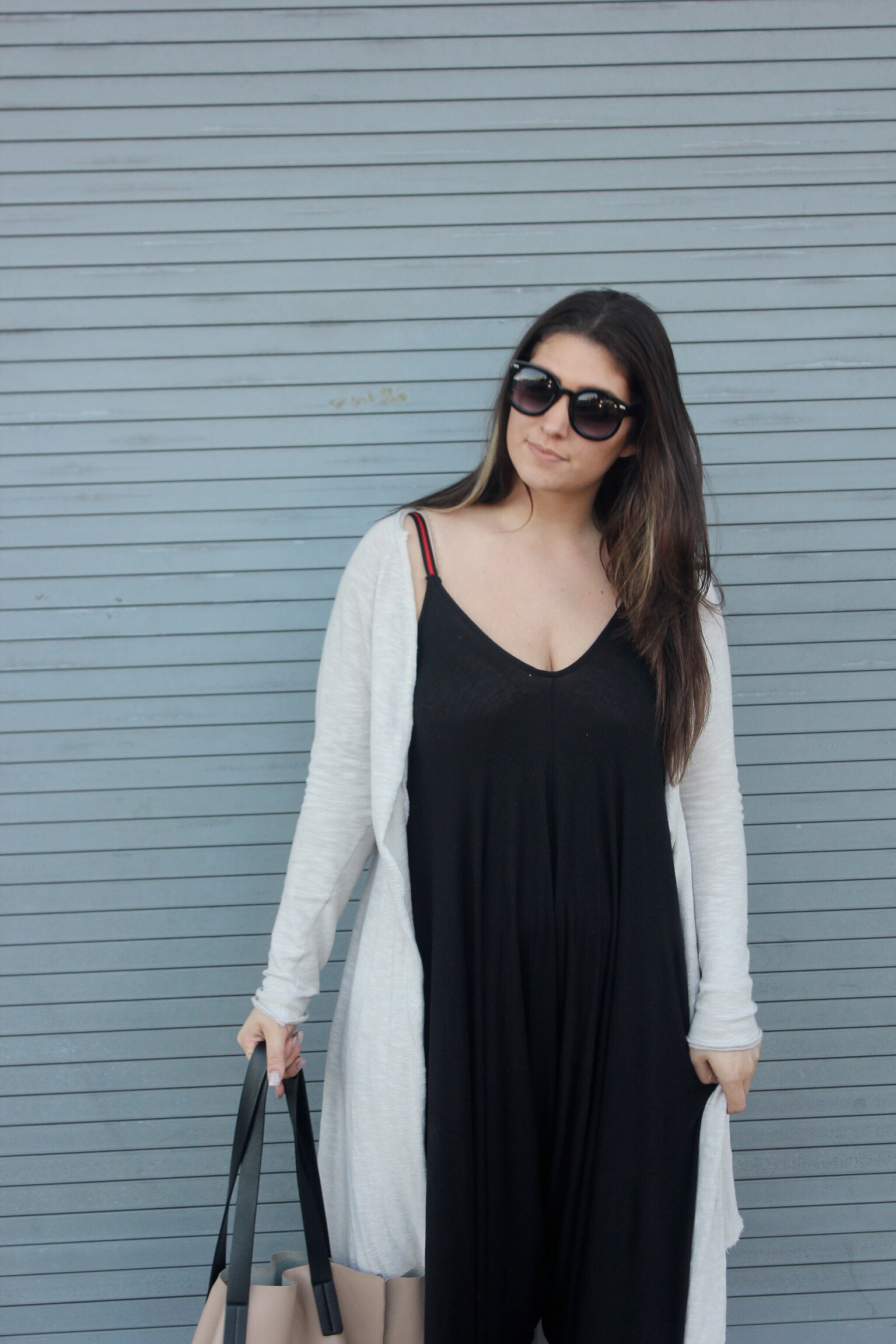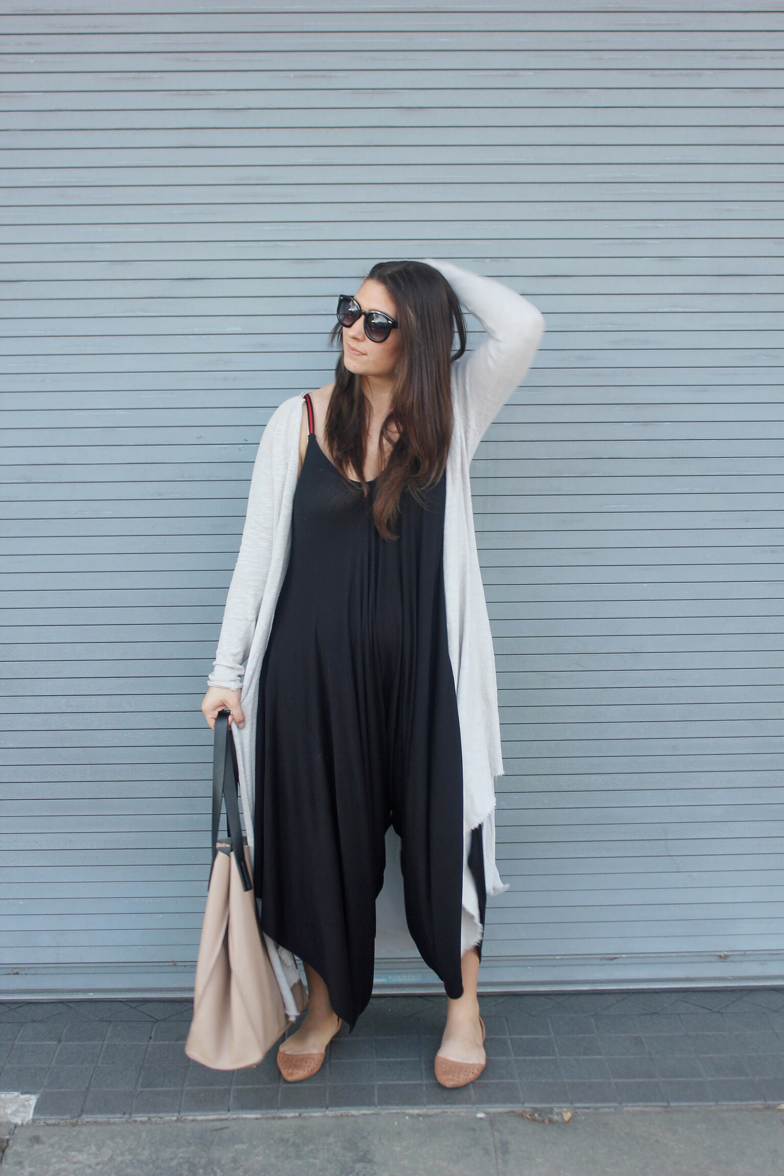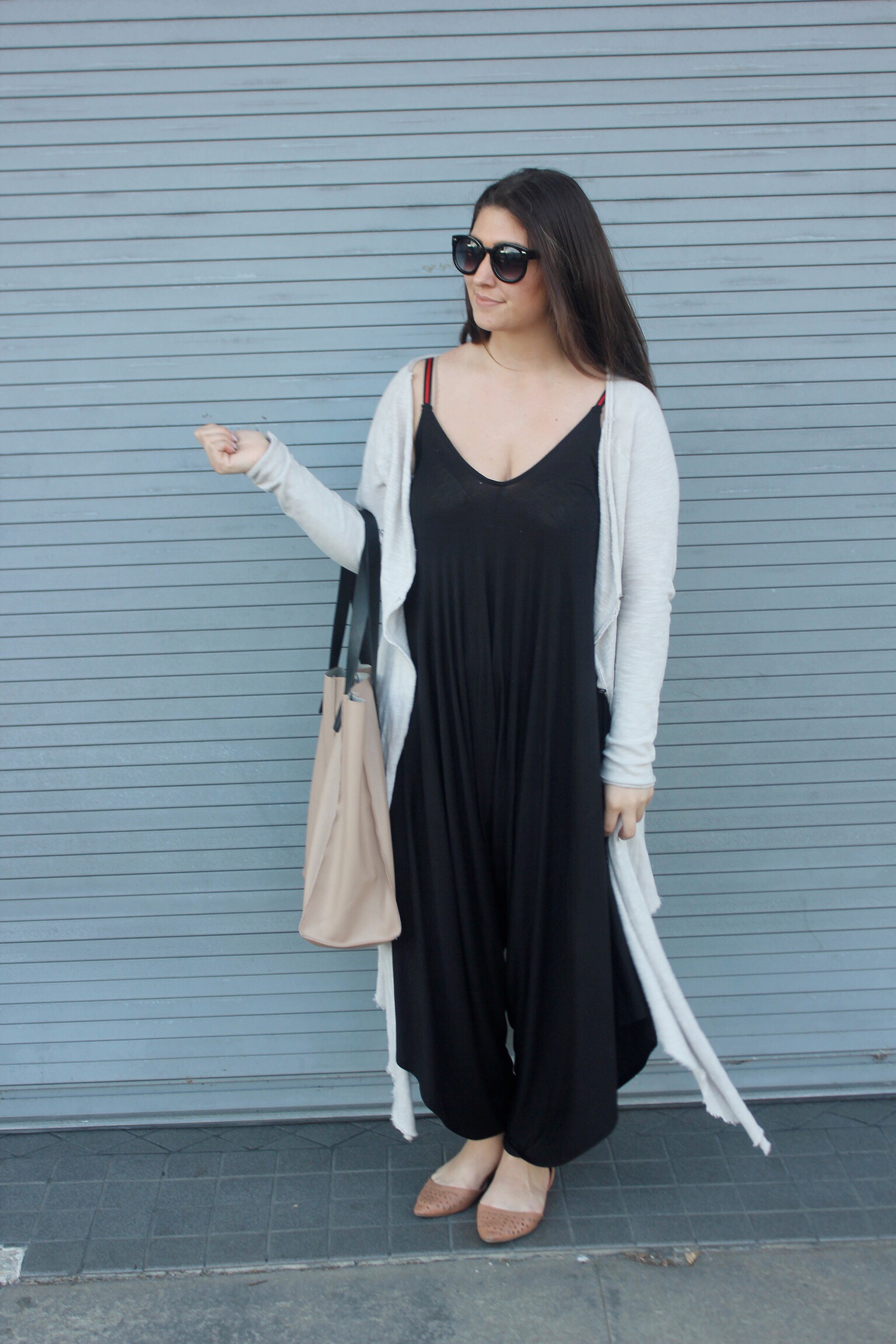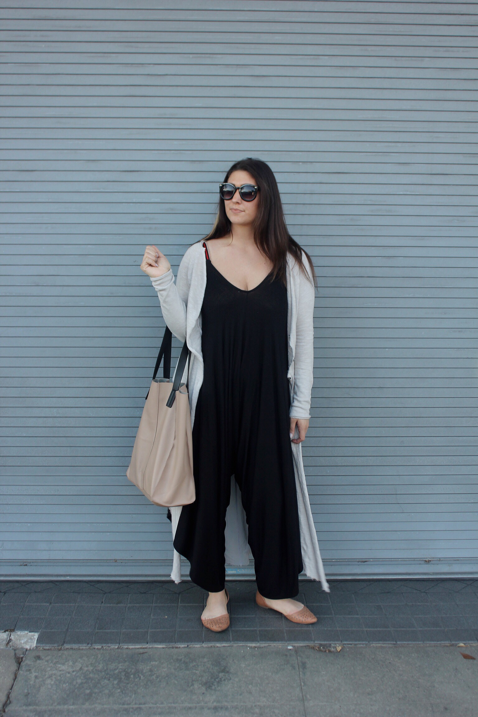 Cardigan similar | Jumpsuit similar | Flats similar | Tote | Sunnies