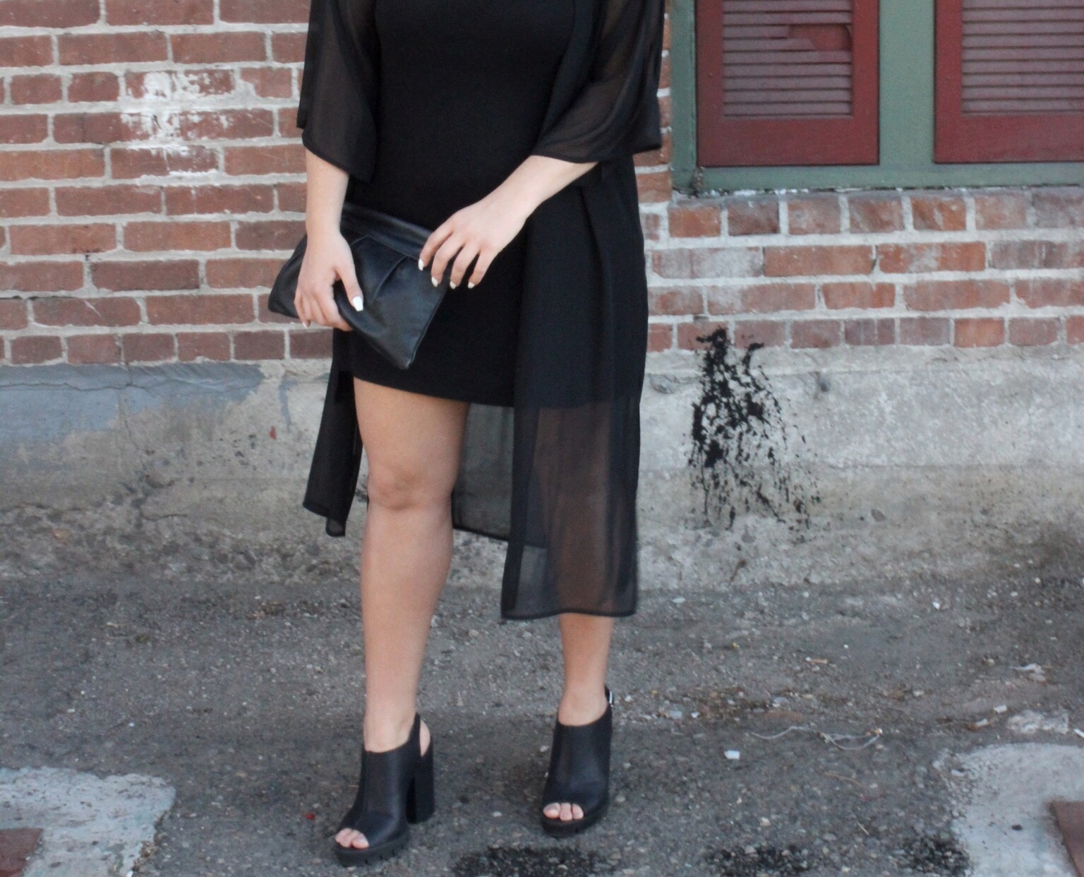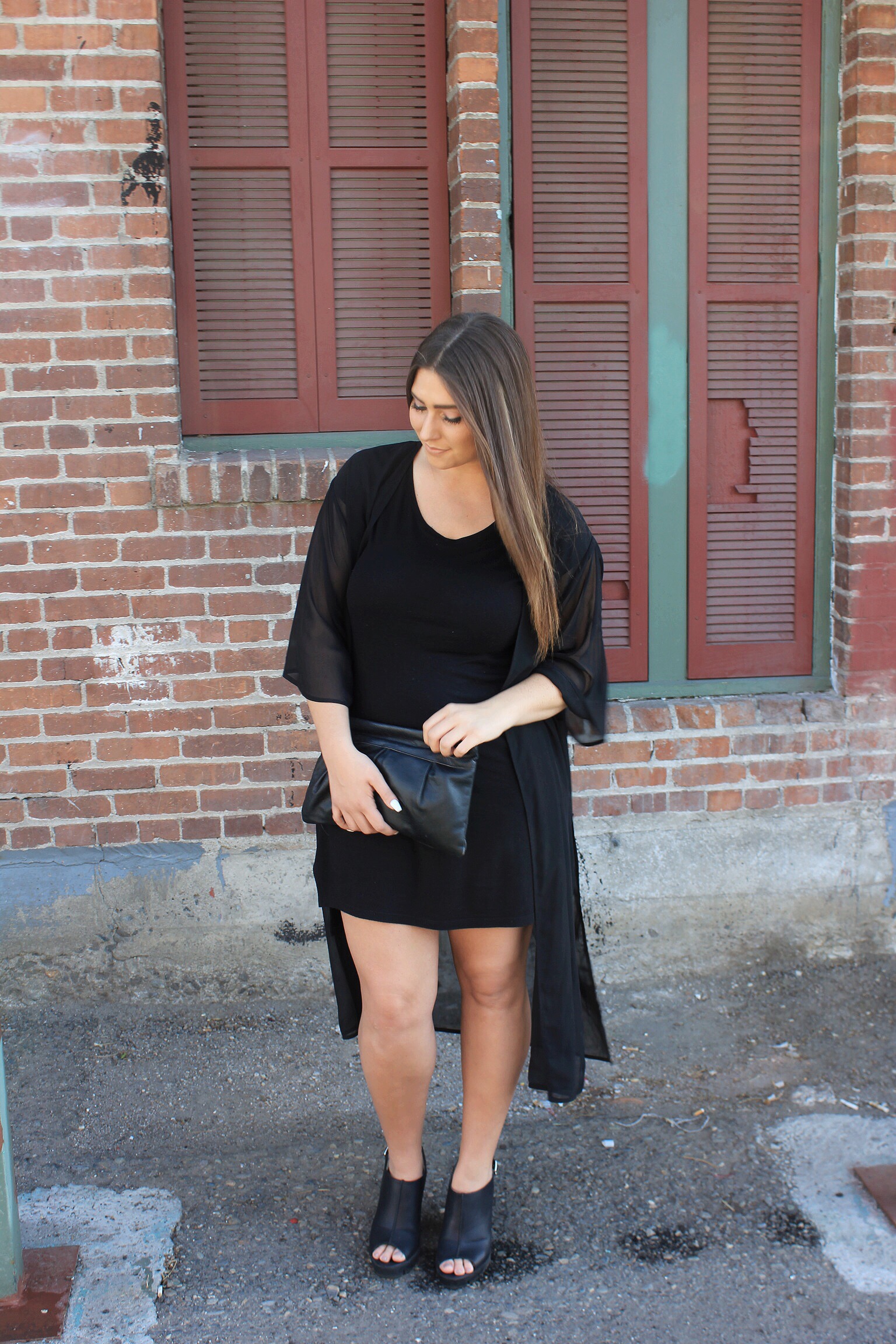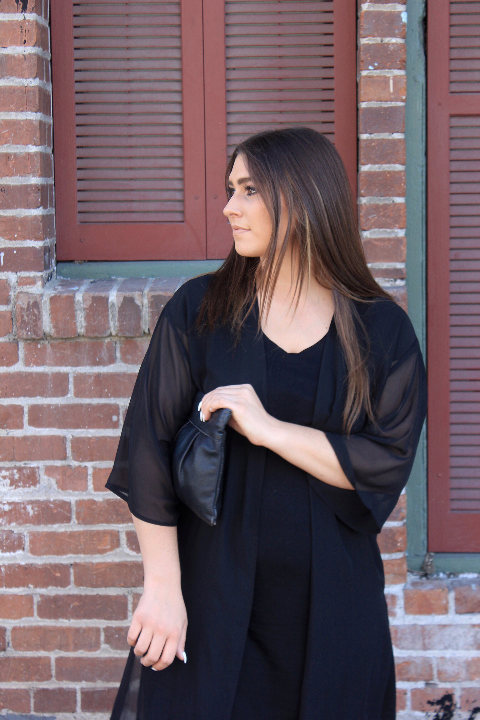 I wore this outfit to a family pizza dinner (all hail the cheesy pizza) & then later to church. I got tons of compliments on the look which is funny because the pieces are just so simple. A black cotton dress & a sheer black kimono & done. You’ve caught everybody’s eye & they think this outfit is actually something special. When in reality it was just a look that made me feel comfortable in my monochratic skin. All black outfits I really do love you, & pizza of course too!
