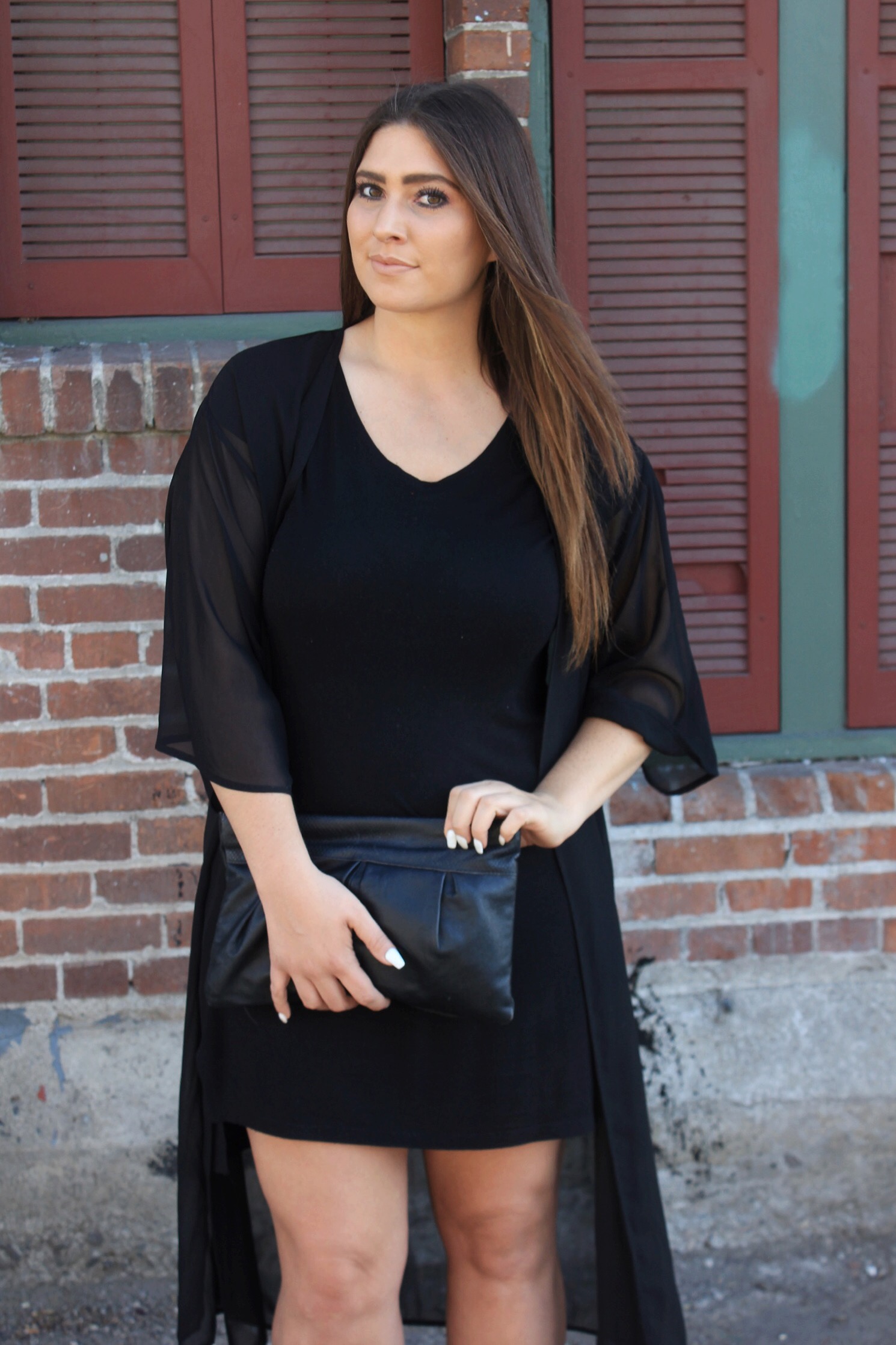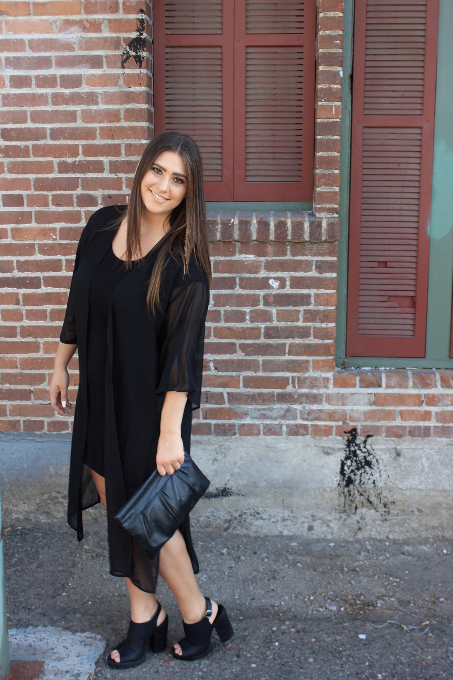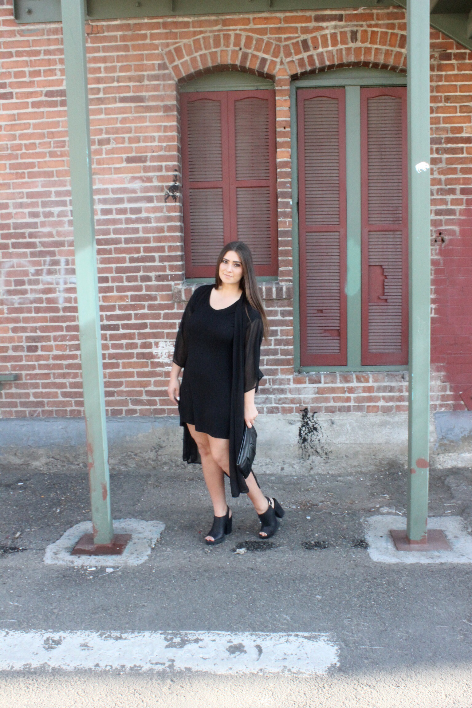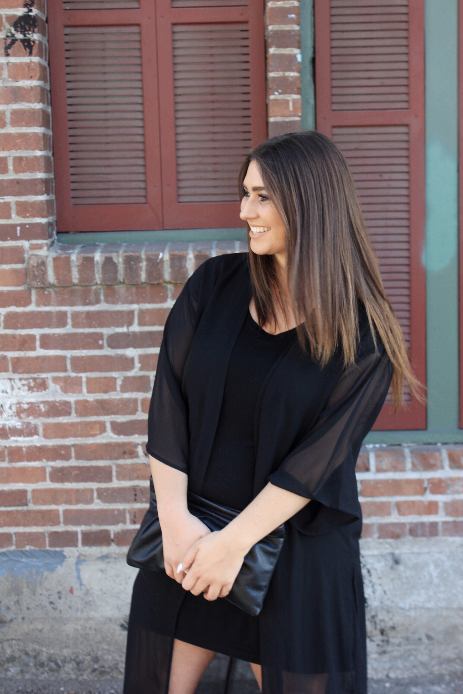 I wore this outfit to a family pizza dinner (all hail the cheesy pizza) & then later to church. I got tons of compliments on the look which is funny because the pieces are just so simple. A black cotton dress & a sheer black kimono & done. You’ve caught everybody’s eye & they think this outfit is actually something special. When in reality it was just a look that made me feel comfortable in my monochratic skin. All black outfits I really do love you, & pizza of course too!