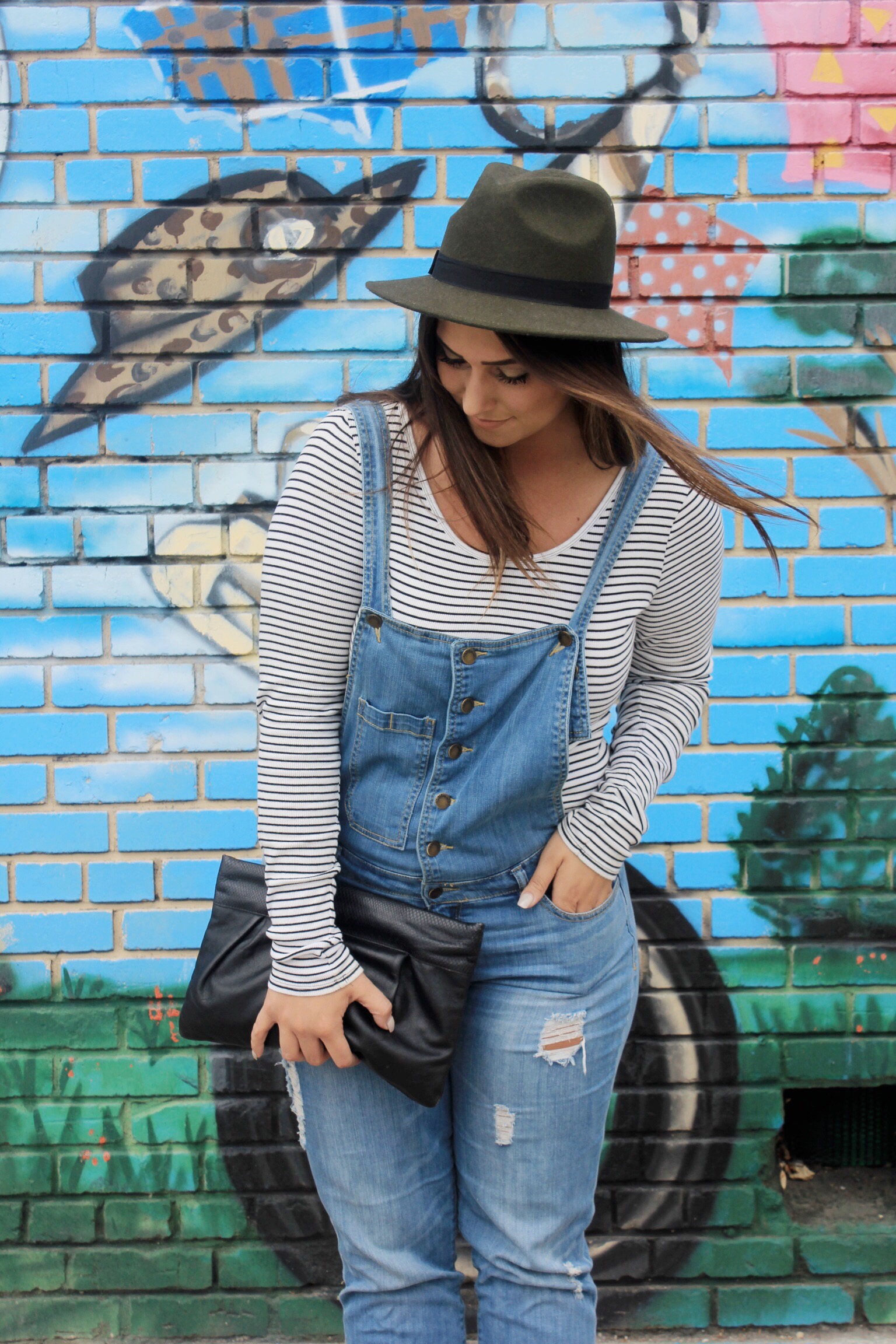 Overalls | Top | Clutch similar | Hat similar | Boots similar