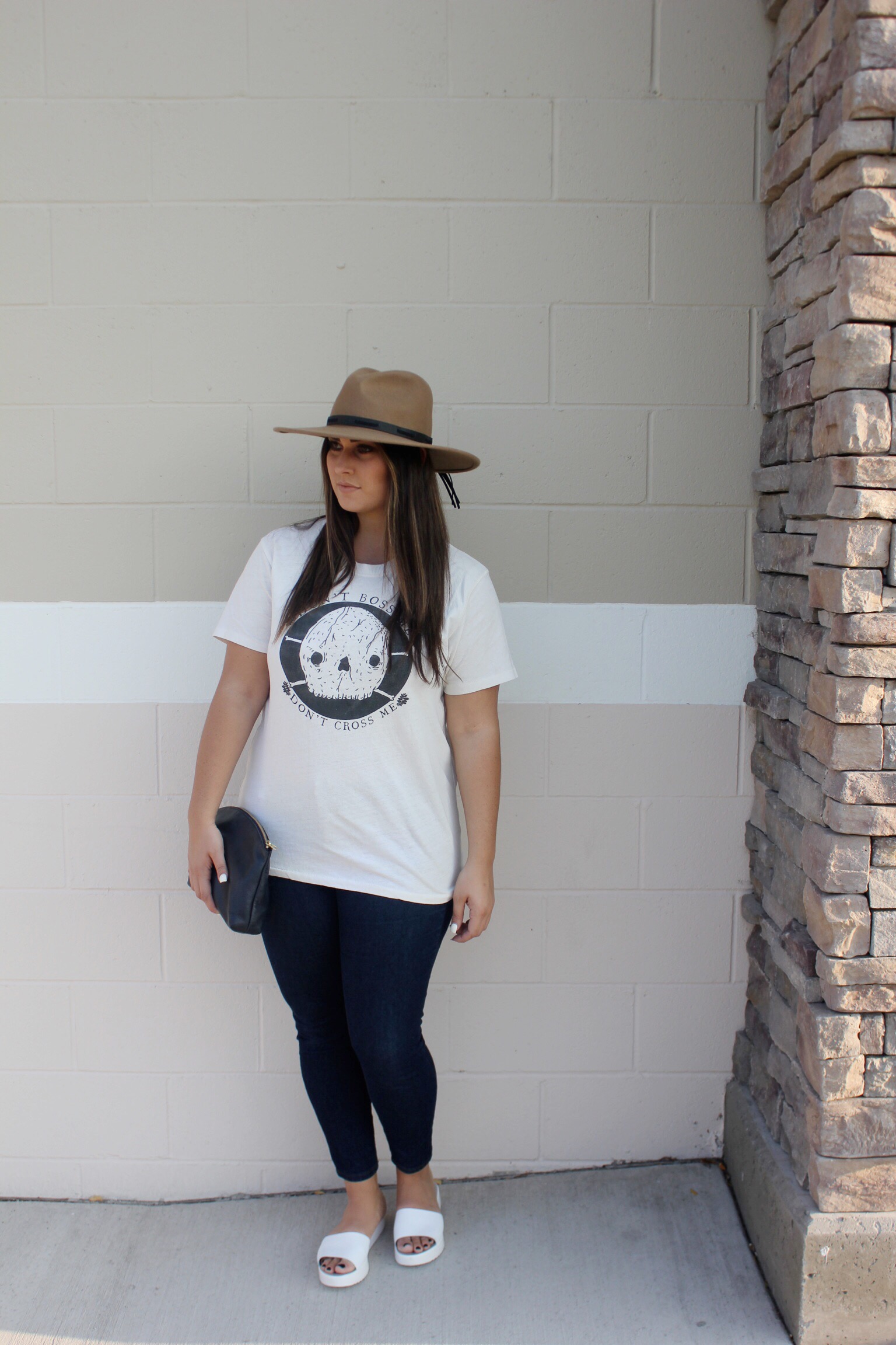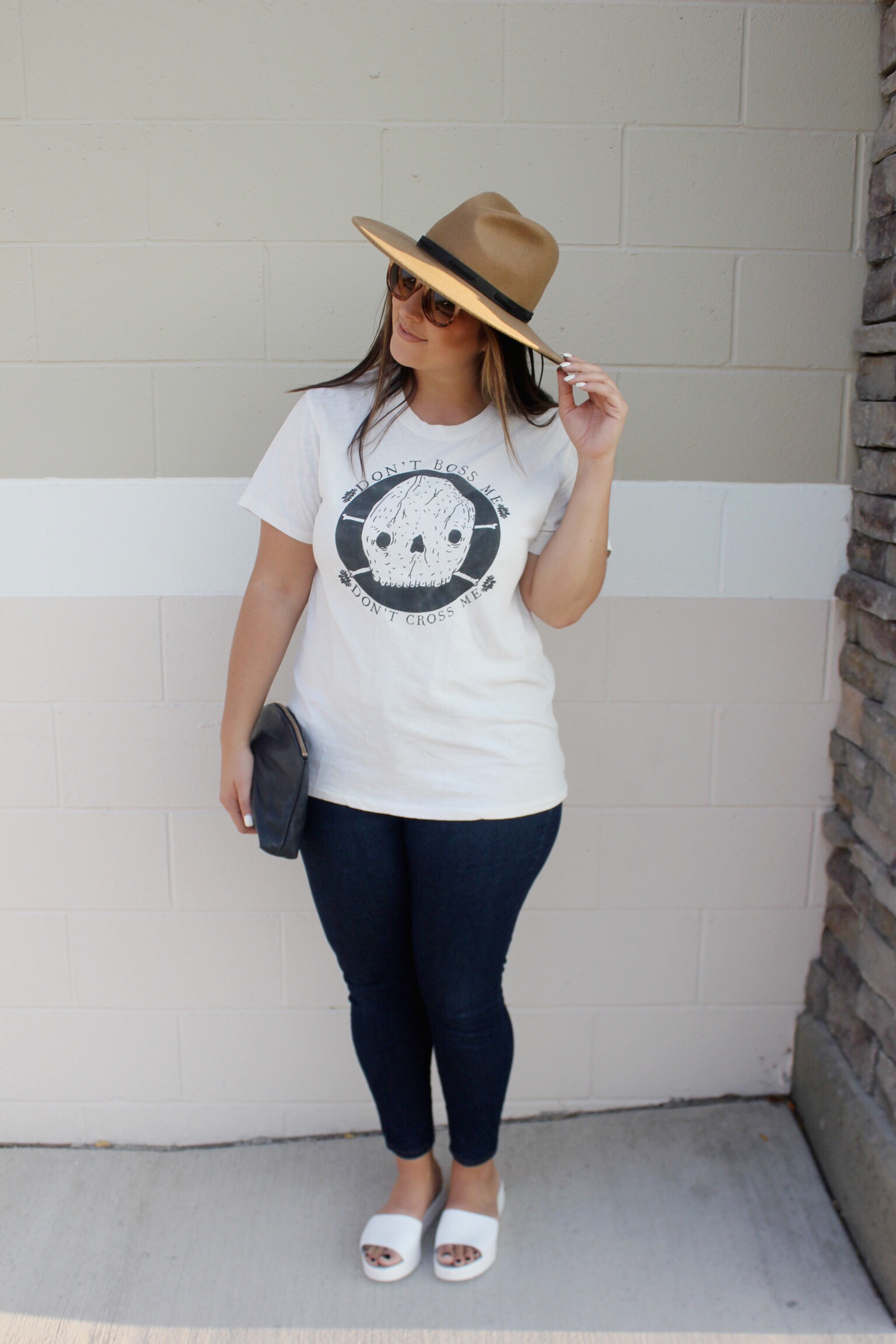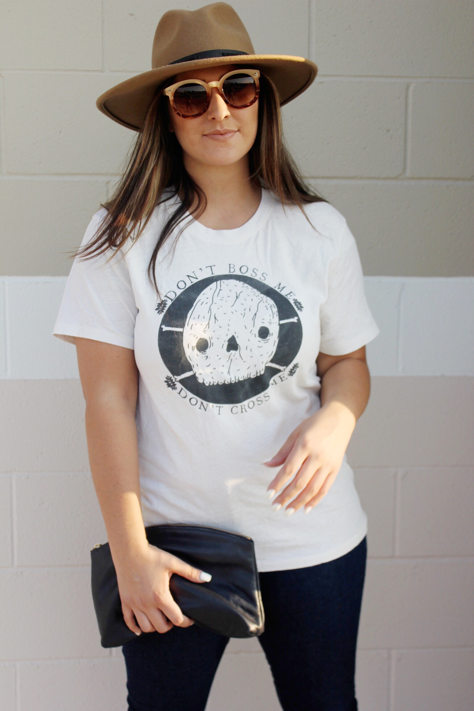 So on the odd chance that my creativity in my closet creates something random & magical, I have to whip out my camera & capture it to share with you guys. This look is simple, it’s basically just a graphic tee & jeans. But the way I tied it all together is what sells this looks as being something that is above average & far from normal. Throwing on a hat, some cool shoes, or grabbing a clutch & sunnies can step up the look of your outfit in just a simple addition of accessories.