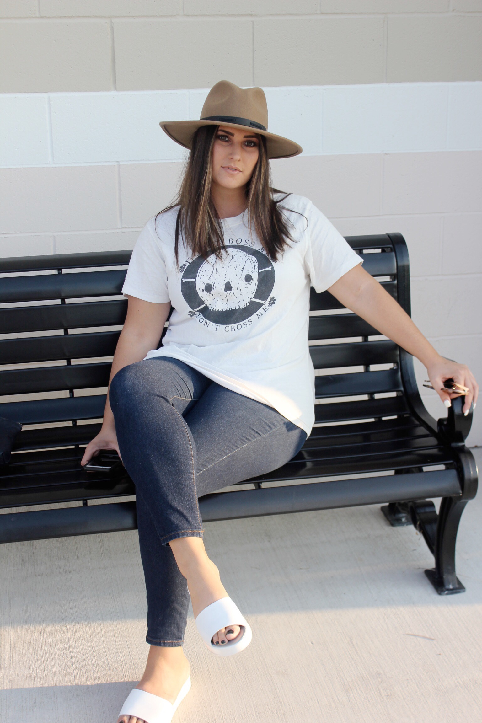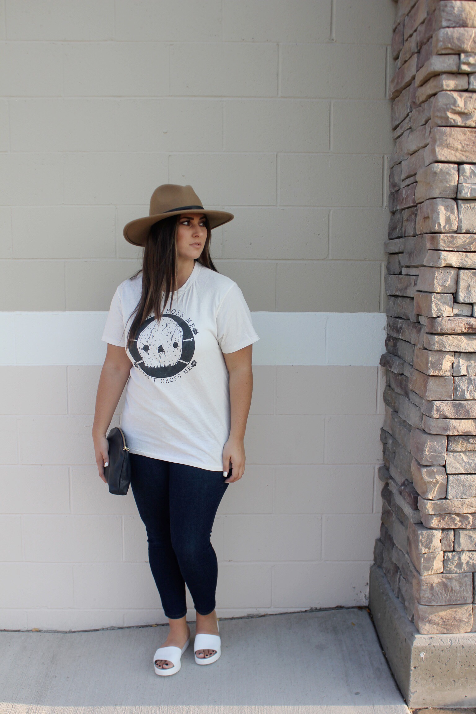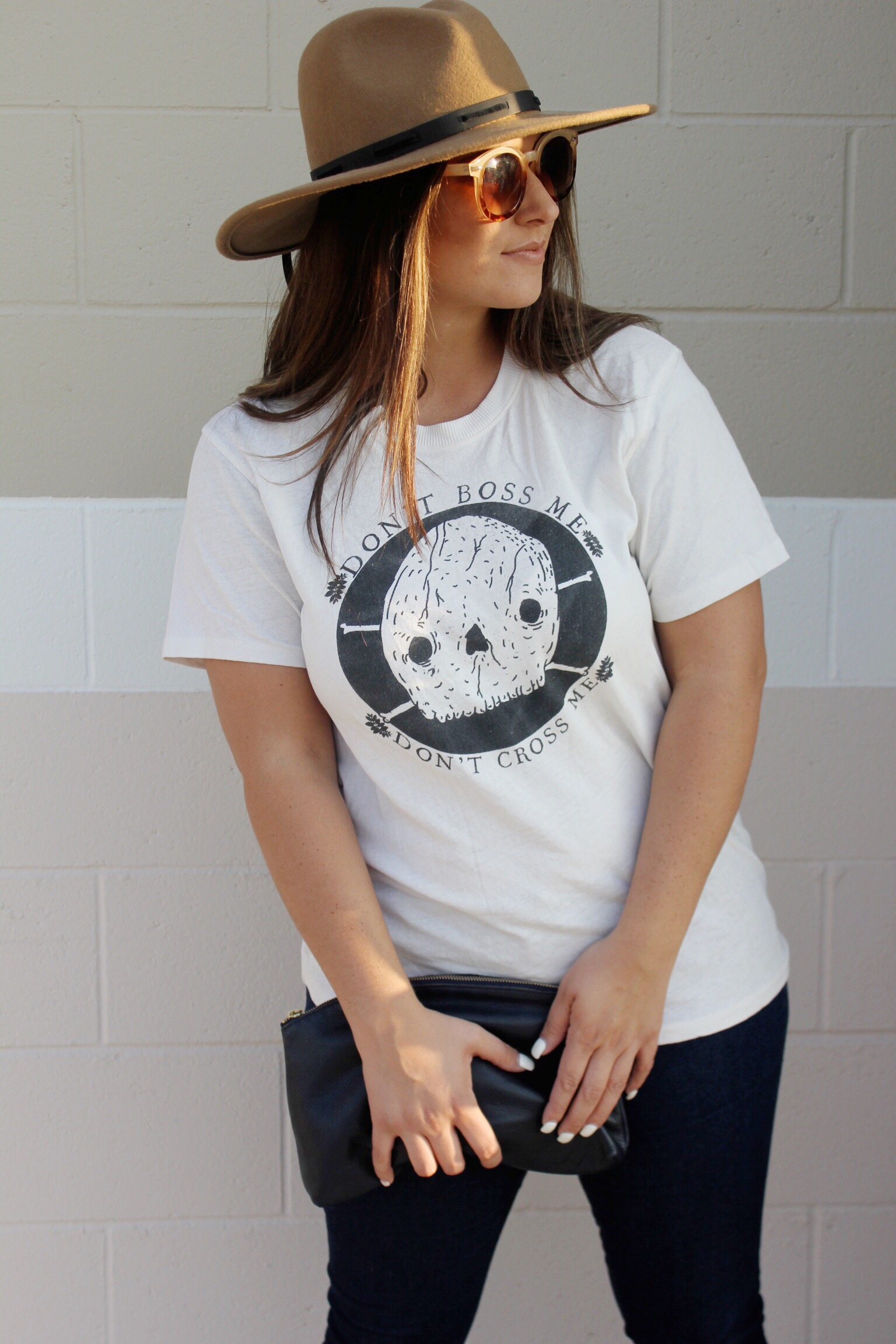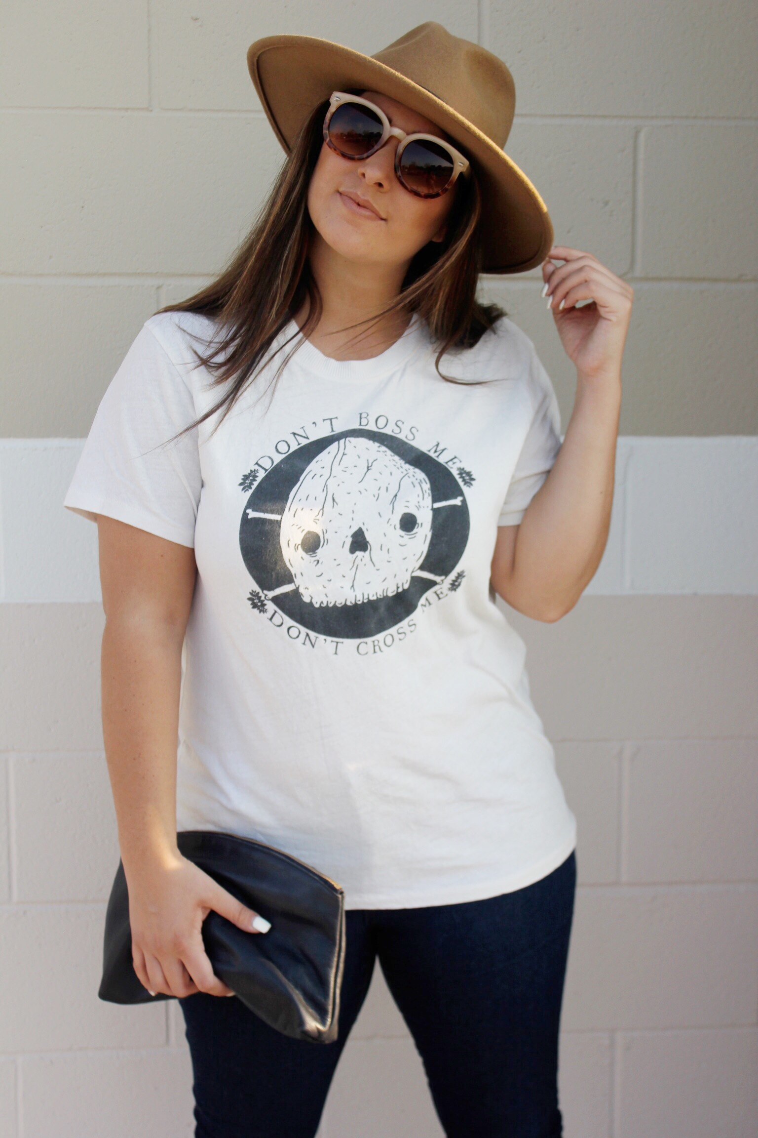 So on the odd chance that my creativity in my closet creates something random & magical, I have to whip out my camera & capture it to share with you guys. This look is simple, it’s basically just a graphic tee & jeans. But the way I tied it all together is what sells this looks as being something that is above average & far from normal. Throwing on a hat, some cool shoes, or grabbing a clutch & sunnies can step up the look of your outfit in just a simple addition of accessories.