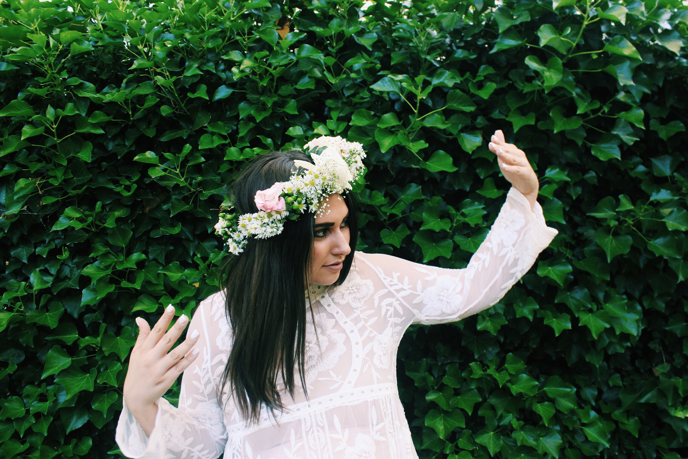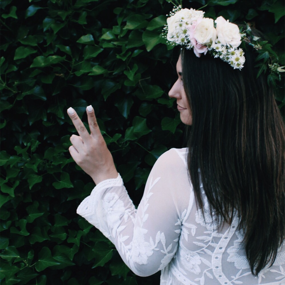My friend is a florist & we played around with some floral crowns one summer night & it was a dream. Especially since I got to wear this all lace white dress from Top Knot Goods.