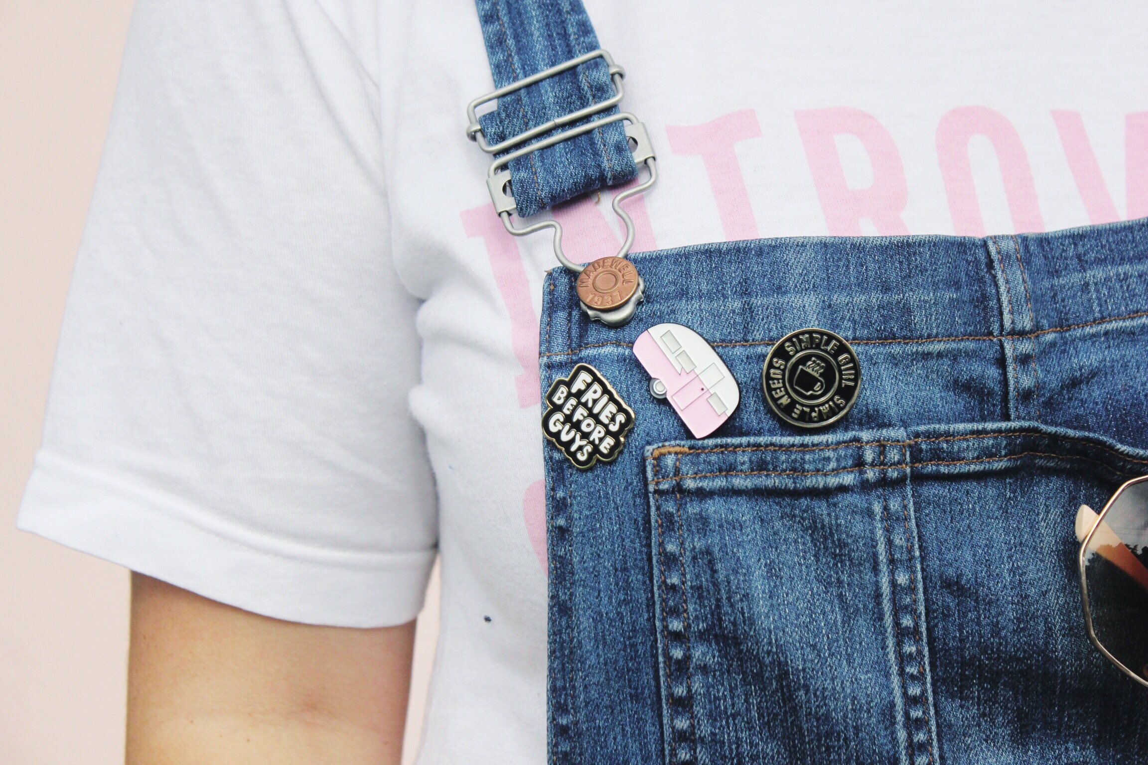 To add just a little more pink to this fun look I added my Luella Retro Camper Pin alongside the Bando Fries Before Guys & Hello Merch Simple Girl Simple Needs pins.