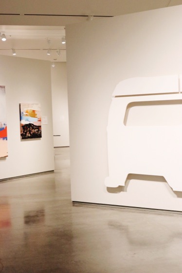 Last week I was invited to a walk through of the art exhibit Tilting the Basin at the Nevada Museum of Art. If you recall I was also able to attend the opening night of the exhibit & you can read about that night here. The walk through tour included a group of us who were there to hear more about the selection/requirements of each Nevadan artist in the exhibit, the stories of the curators first meeting with selected artists, & a few behind the scene stories & meanings behind the artist’s work. I had never been to a guided walk through at an art museum before, not even as a kid, & I found it so helpful & honestly inspiring.