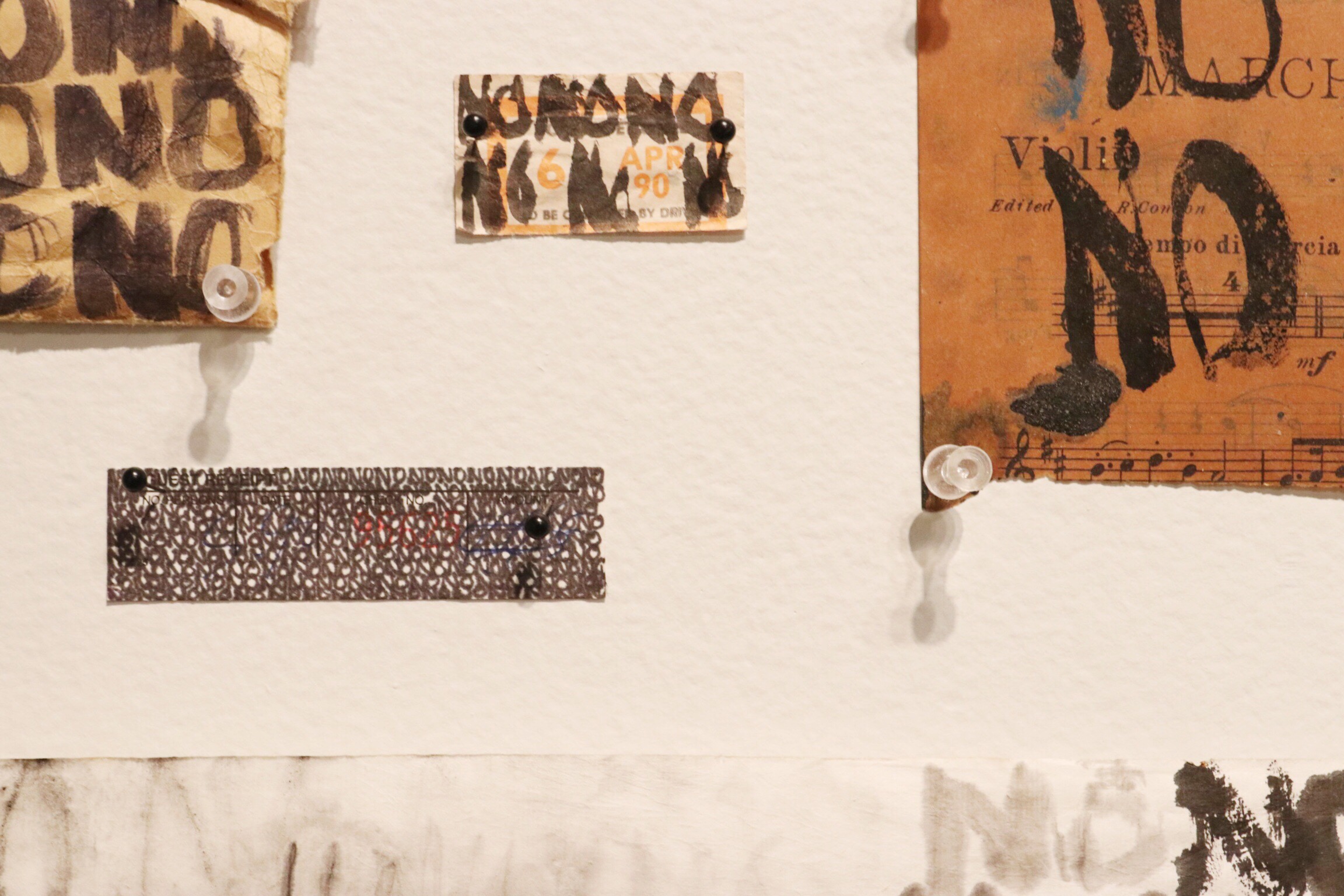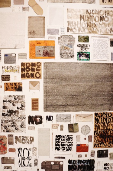 The next installment is his NO series which is oddly beautiful & can have so many different meanings pulled from it. Years ago his house burnt down & he started writing “NO” on different burned pieces of papers that he gathered after the event. He took the time to perfectly display the papers on the wall & it’s somehow powerful. The details, it’s in the detais.