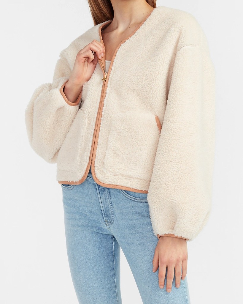 It’s no secret that I buy a new jacket every fall. And honestly, I’m too excited that I just bought this sherpa jacket! It’s lined with guac suede & it’s seriously so warm. Loving the puffed sleeves & gold zipper too!